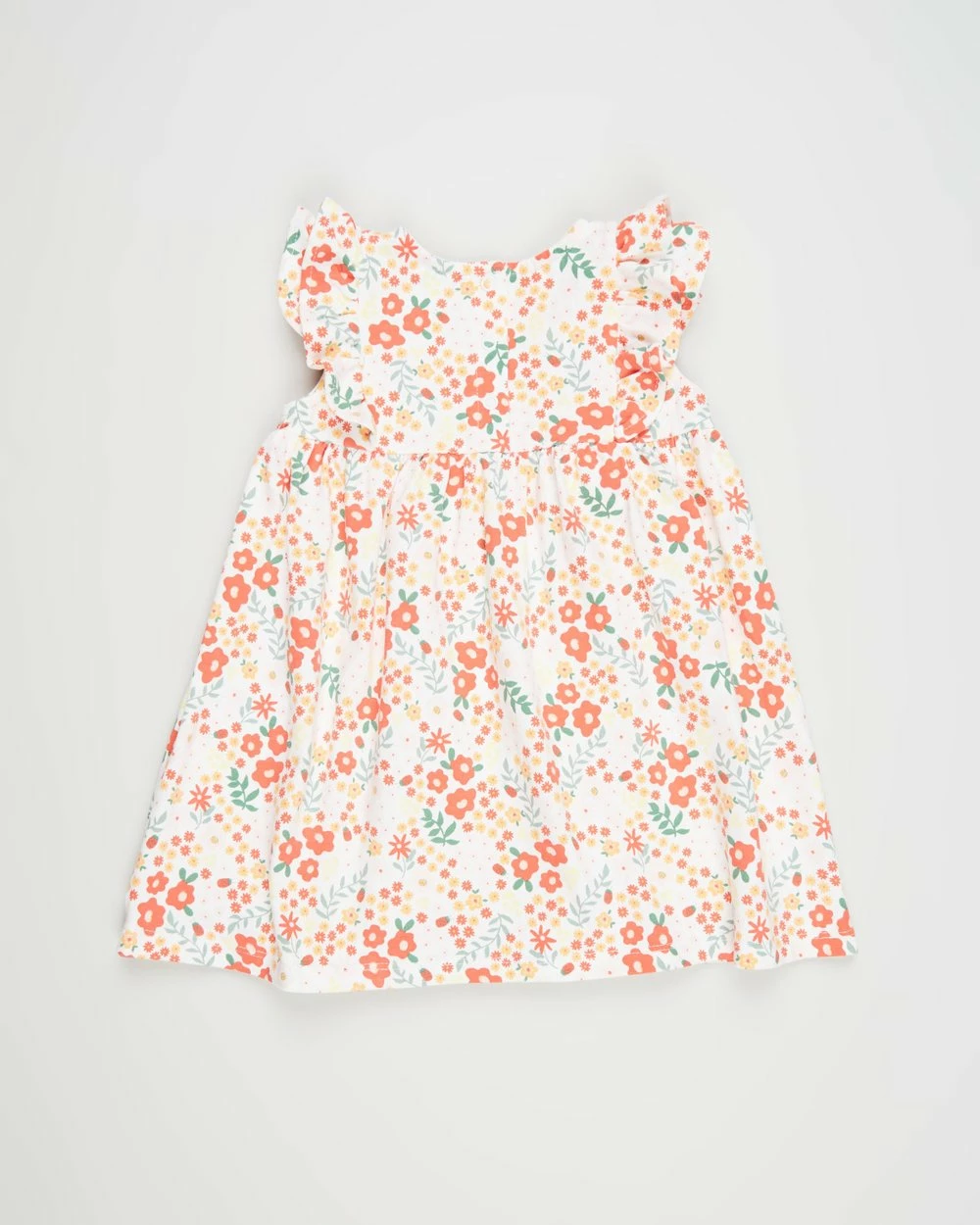 Best deal ⌛ Cotton On Baby Megan Sleeveless Ruffle 👗 Dress – Babies Vanilla & Red Orange Lulu Floral ❤️