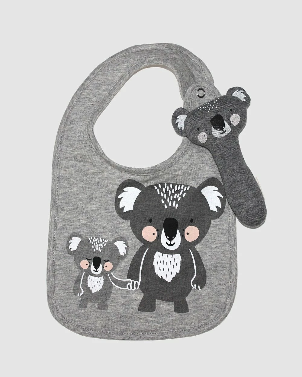 The Mister Fly Koala Buddies Bib & Rattle Bundle is made with the softest cotton with the cutest face!