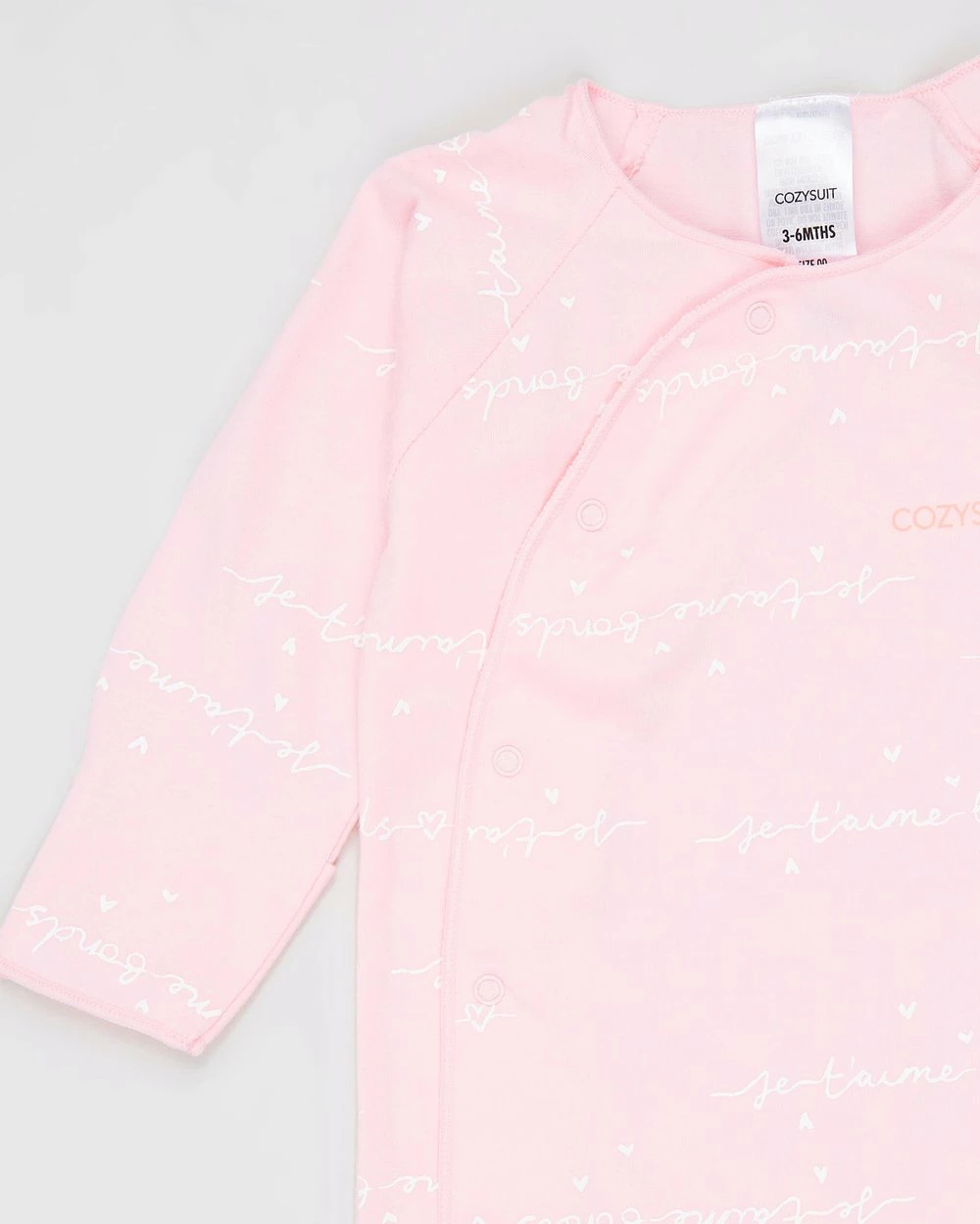 – Snap button front closure from neck to leg for easy dressing