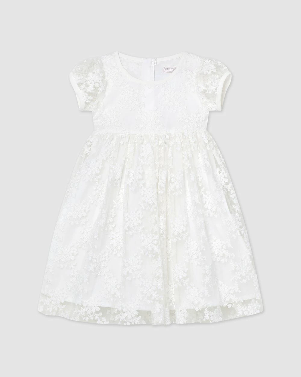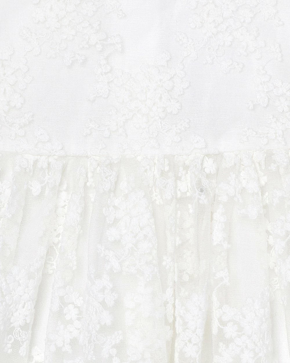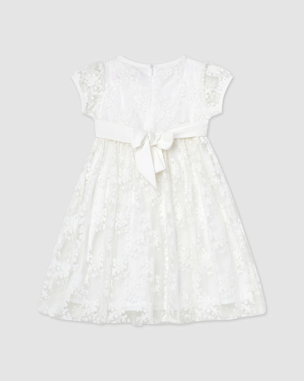 Lovers of lace, look out! The Sophia Christening Lace Dress by Designer Kidz features a beautiful floral lace embroidery throughout the dress, complemented by cap sleeves and a stitched-in chiffon tie at the waist. Designer Kidz is an Australian owned special occasion wear label.