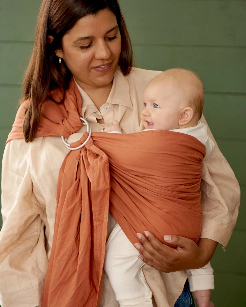 Crafted form lightweight organic cotton and fixed with two strength-tested rings for stability, the Organic Ring Sling from Nature Baby allows you to carry bub in a comforting and more traditional way that naturally supports their developing body.
