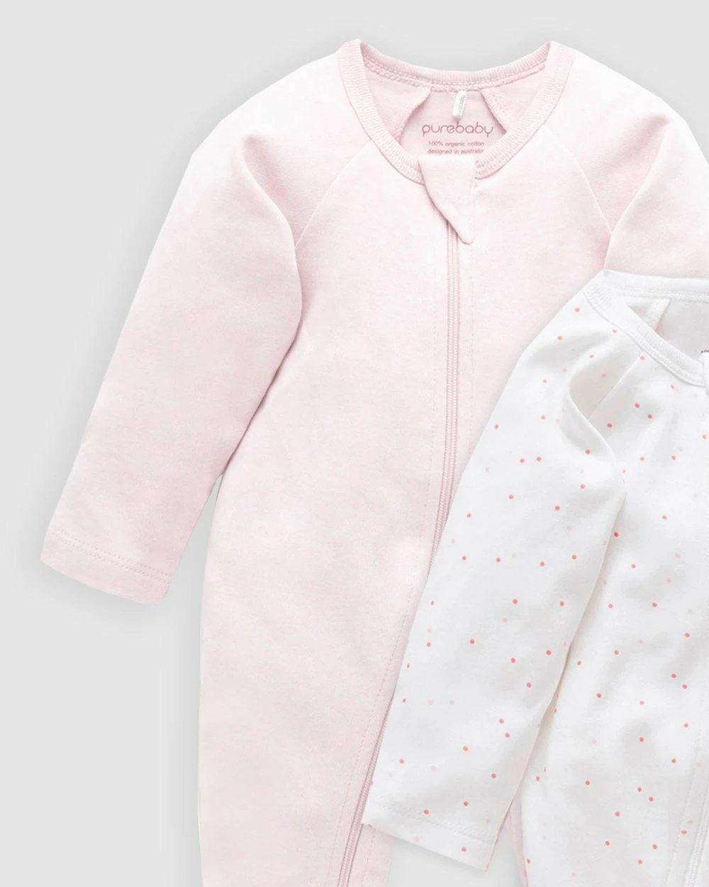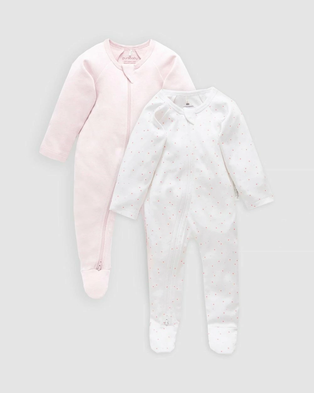 Best Pirce 🎁 Purebaby 2 Pack Zip Growsuit – Babies Pale Pink Spot & Soft Pink Melange 🛒
