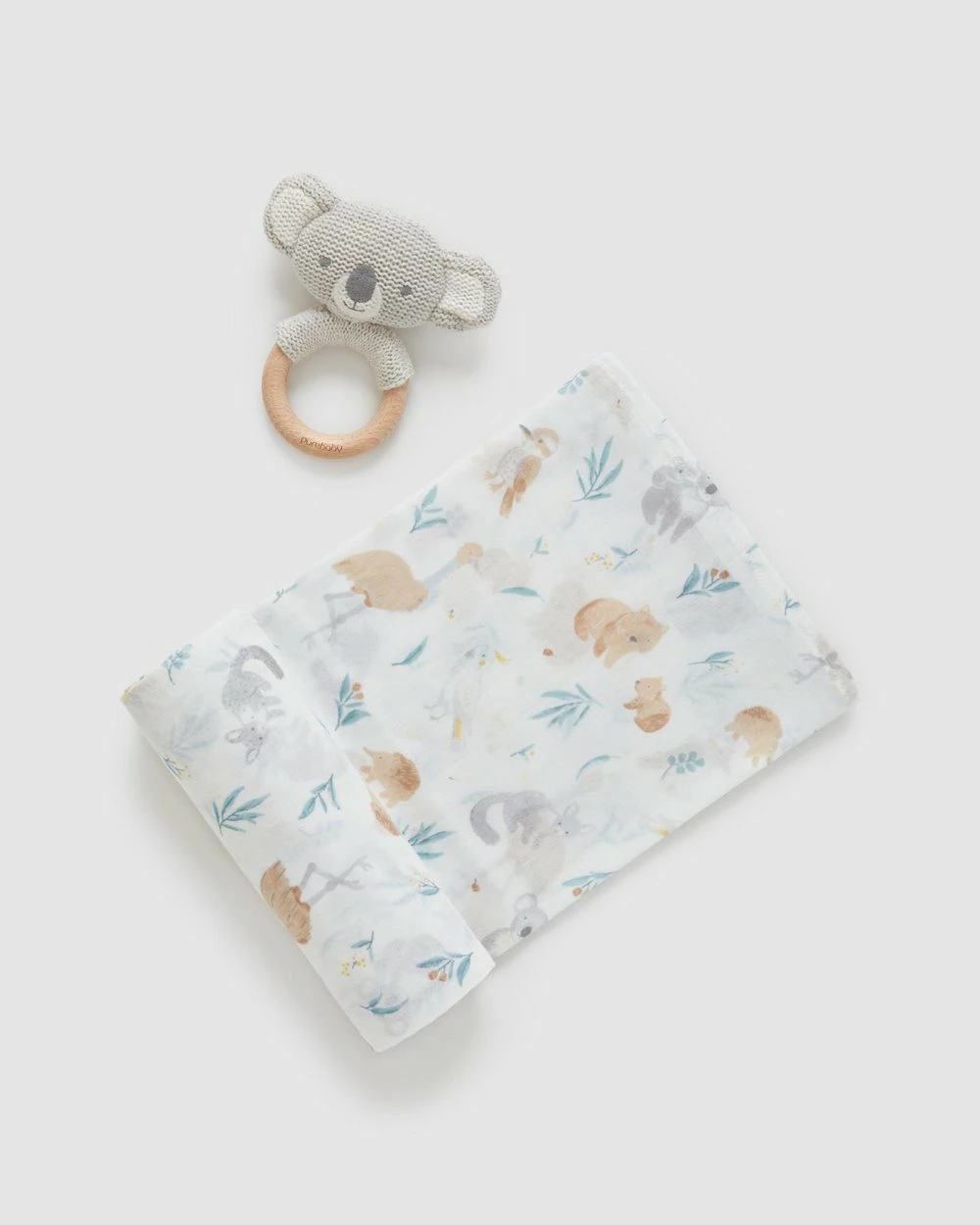 Established in 2002, Australian-owned label Purebaby only uses the finest organic materials to create their range of clothing and accessories for babies and children. Perfectly executing their vision of simple yet beautiful products created with awareness and care, each piece is lovingly crafted with soft, organic fabrics that are gentle and soft against the skin, and don’t compromise on social responsibility. Timeless, simple, and high quality, Purebaby is the ideal brand for parents that are searching for natural alternatives to dress their little ones. Purebaby’s two-piece Wrap & Rattle Hamper is thoughtfully designed with gifting in mind as part of the Australiana range. Consisting of incredibly soft, GOTS certified 100% organic cotton, this hamper includes a muslin wrap and a sweet koala rattle.