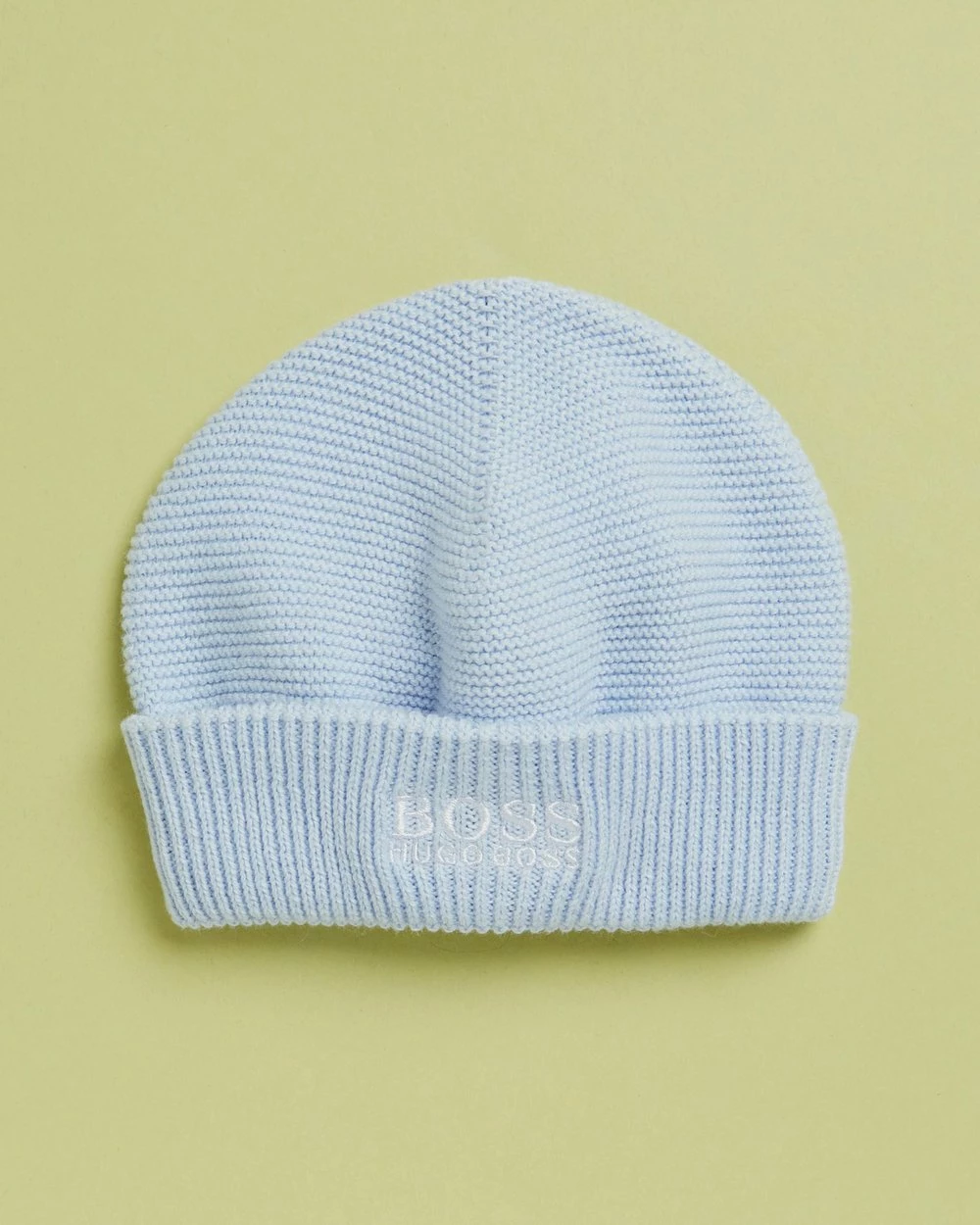 Pair the adorable Pull-On Hat & Slippers Box set by BOSS for the ultimate warm companion to keep your little one cosy.