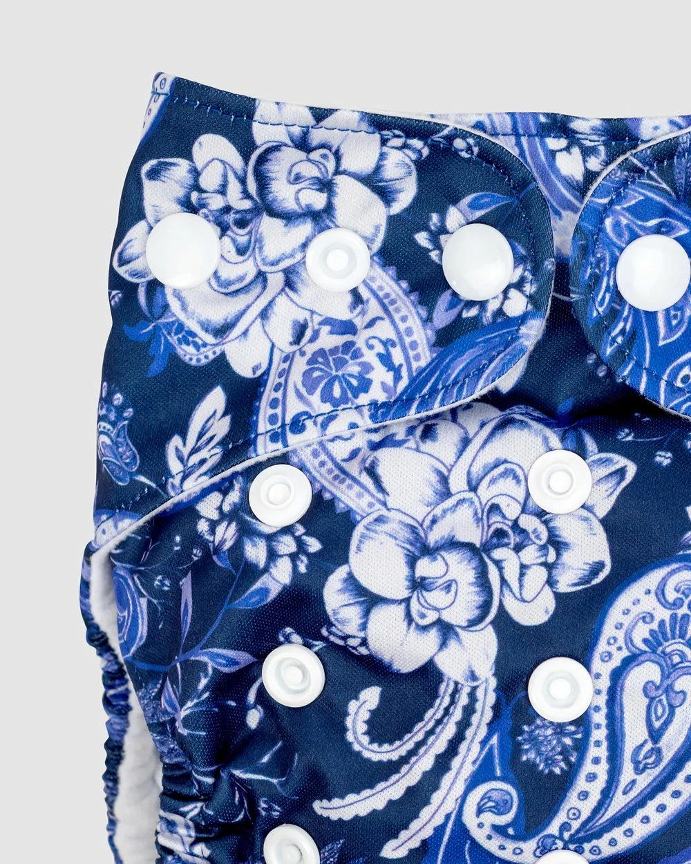 – One Size Fits Most – suitable from newborn, through to toilet training (3.5kg-15+kg, depending on individual body shape)- All-in two nappy providing 3 rise settings for adjustable fit- Australian owned and designed for over a decade- Exclusive custom-designed hand illustrated prints. – Nappy contains two tri-layer inserts; a smaller snap-in insert and a long anchor shaped insert- A pocket opening at the back for additional boosting – Inserts: Custom milled bamboo/cotton inserts with vegan suede topper to draw moisture away from skin- Cover: PUL (polyurethane laminate) outer, which keeps moisture from leaking through