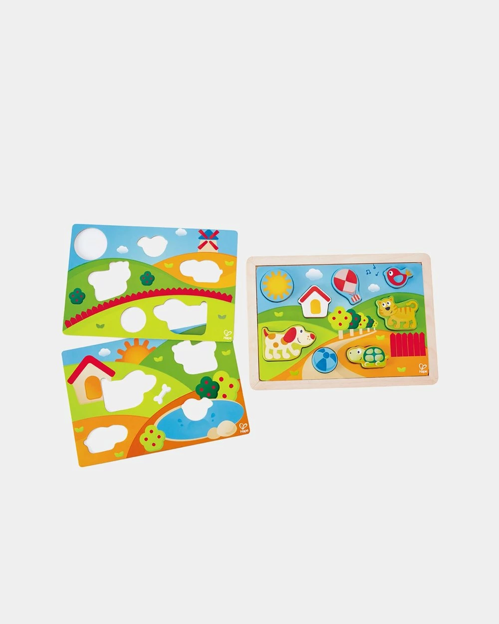 – Includes 3 scenes, 8 puzzle pieces and 1 tray