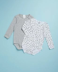 Best Sale ✨ Bonds Baby Wonderbodies Long Sleeve Bodysuit 2 Pack – Babies Mini Spot Leopard White & New Grey Marle 🤩