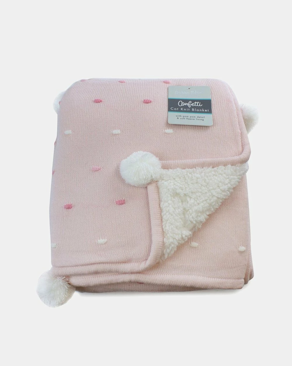 This timeless reversible soft knit & fleece Confetti Knit Blanket by Bubba Blue are perfect for use for bed time and outings, a soft surface for tummy time on the floor or for cuddle time. Featuring a stylish embroidered confetti dot front in Bamboo Viscose/Cotton Knit, and a super soft and cuddly fleece lining. With adorable corner pom pom details – this classic confetti blanket is sure to become one of your baby’s favourites.
