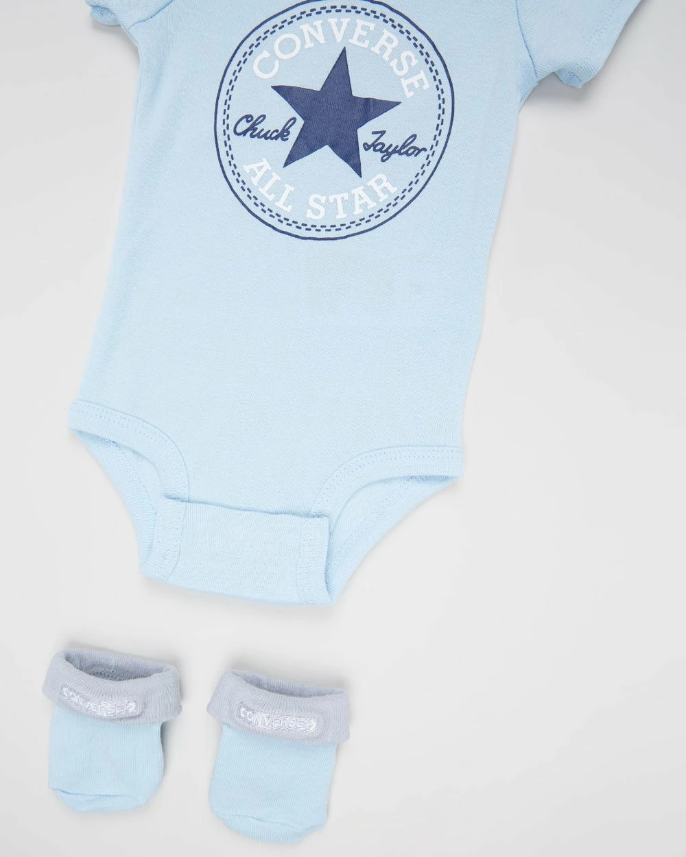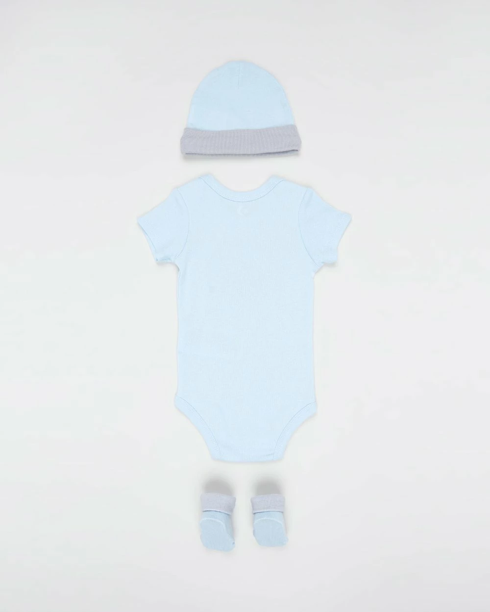 – Folded cuff with white embroidered branding on beanie hat and socks