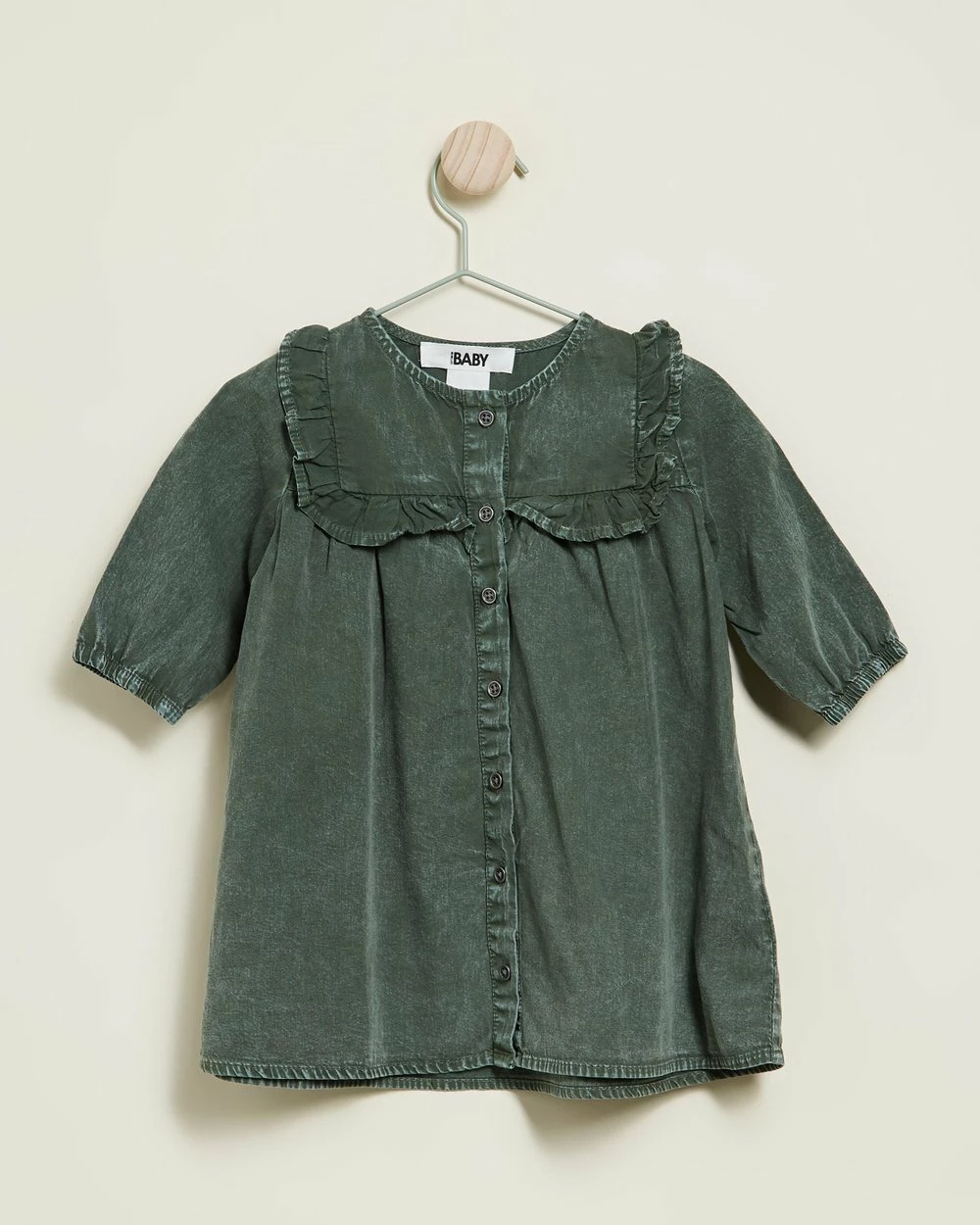 Best Sale 😍 Cotton On Baby Fiona Long Sleeve Frill 👗 Dress – Babies Swag Green Wash 🔥