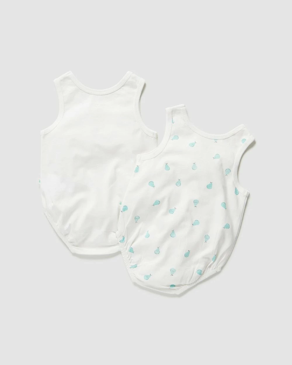 – 2x Snug and soft sleeveless bodysuits with snap button opening at inleg for easy dressing