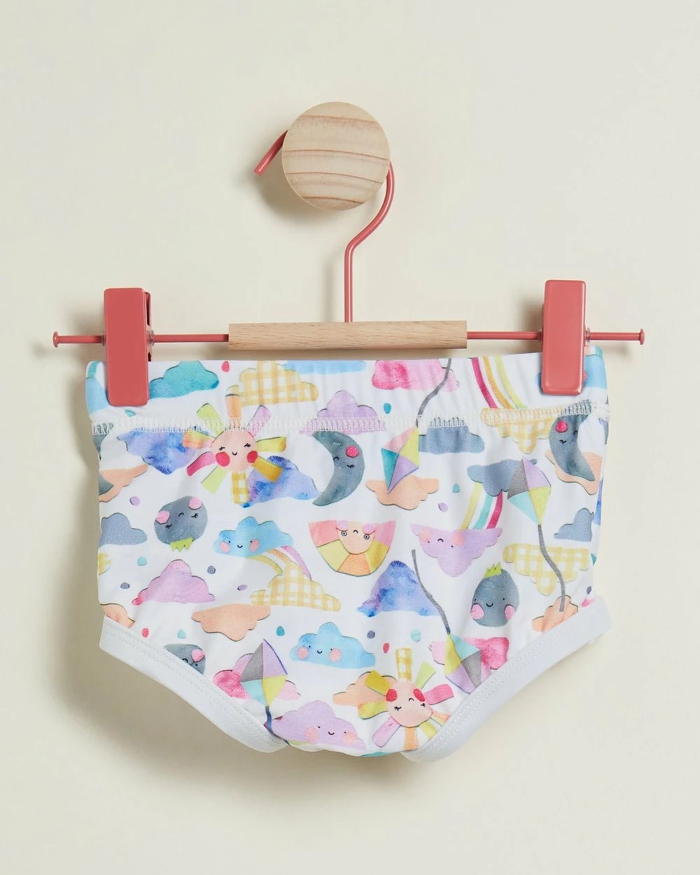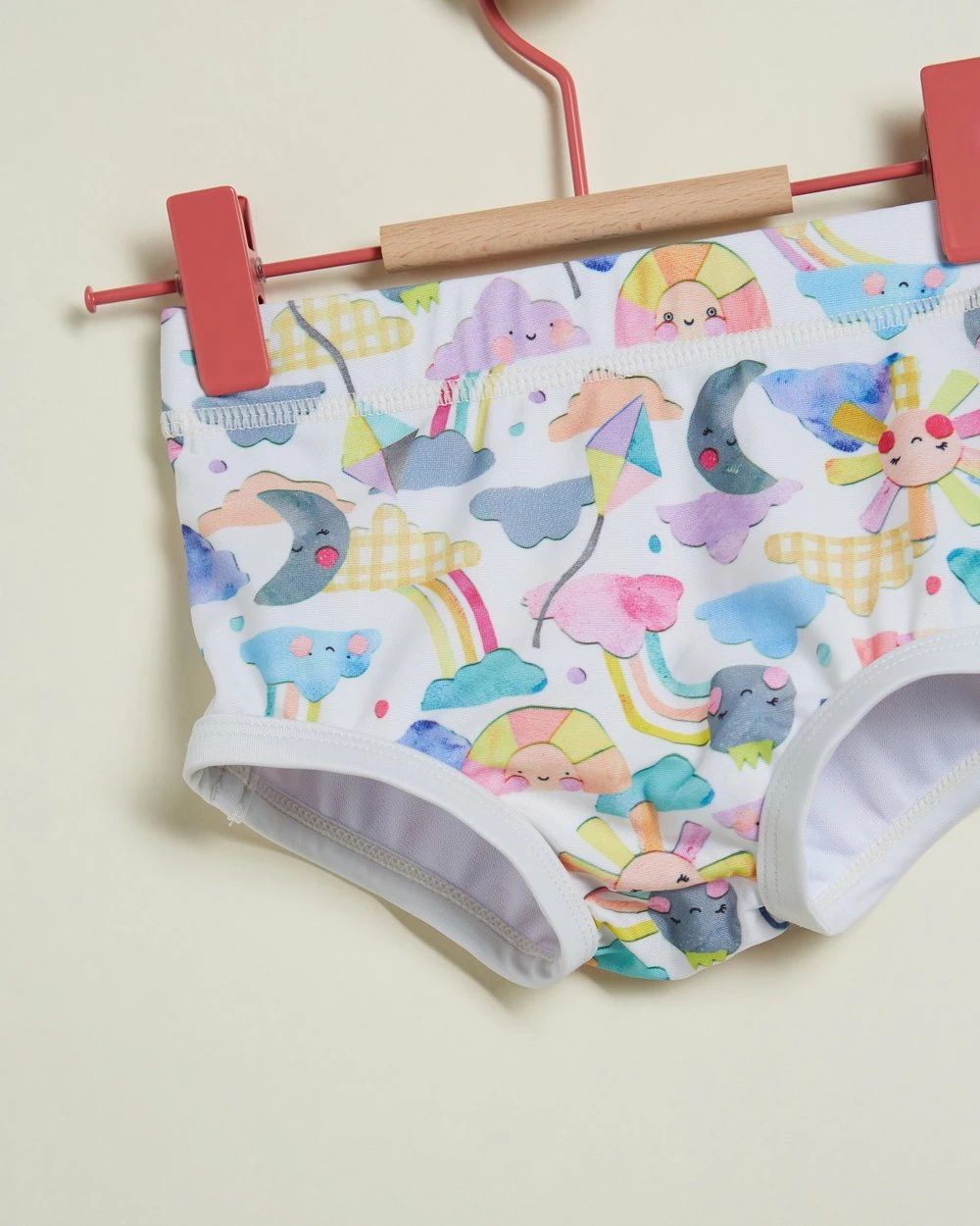 -Two-piece set; long sleeve top paired back with nappy pant style bottom allows for easy dressing and dry off