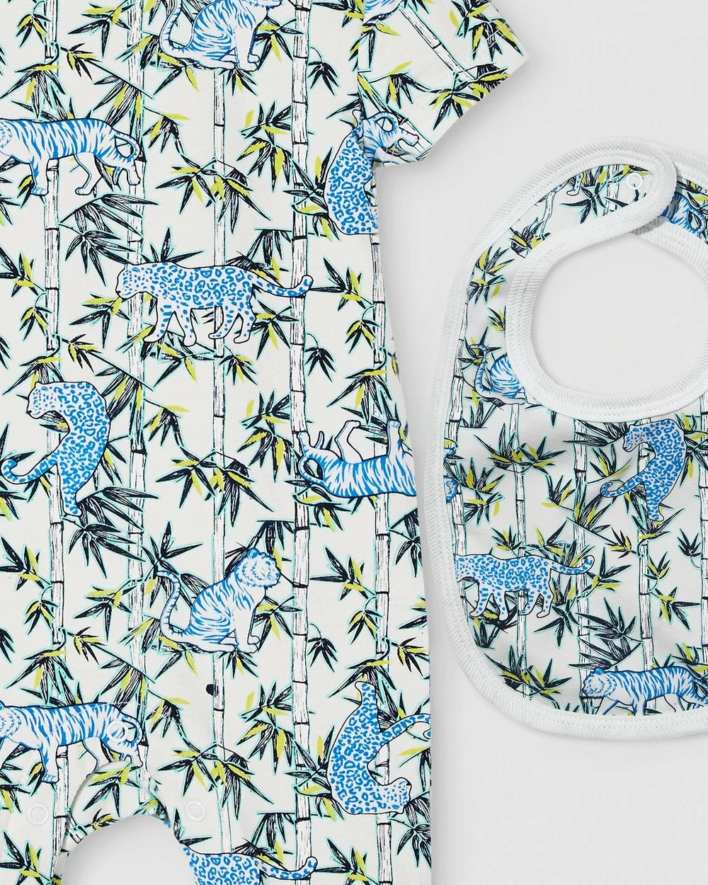 – Snap-buttoned romper nape and gusset