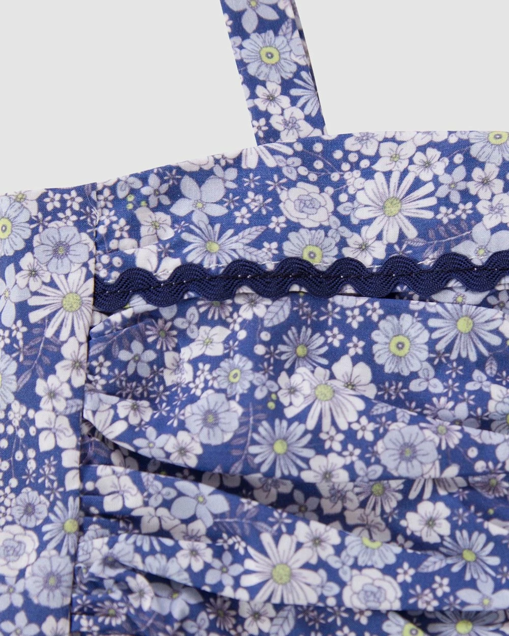 With a delicate floral pattern and snaps to fasten, Peggy‘s delightful Isla Playsuit is perfect for sunny days out.
