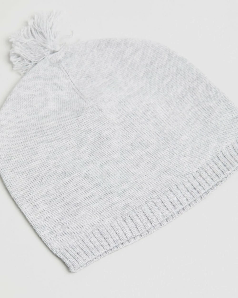 The Essentials Newborn Beanie by Purebaby features a snug fit, soft organic cotton knit construction, and a ribbed hem.
