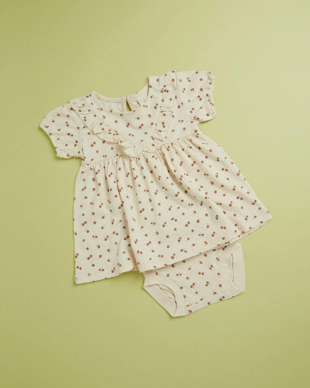 Best Sale ✔️ Quincy Mae Short Sleeve Ruffle V 👗 Dress Set – Babies-Kids Natural Petite Floral ⭐