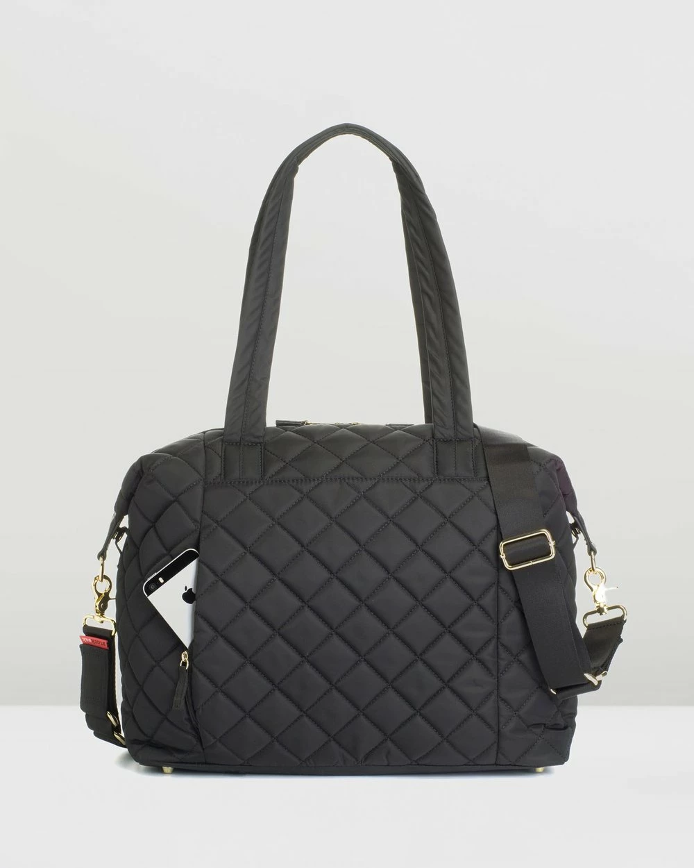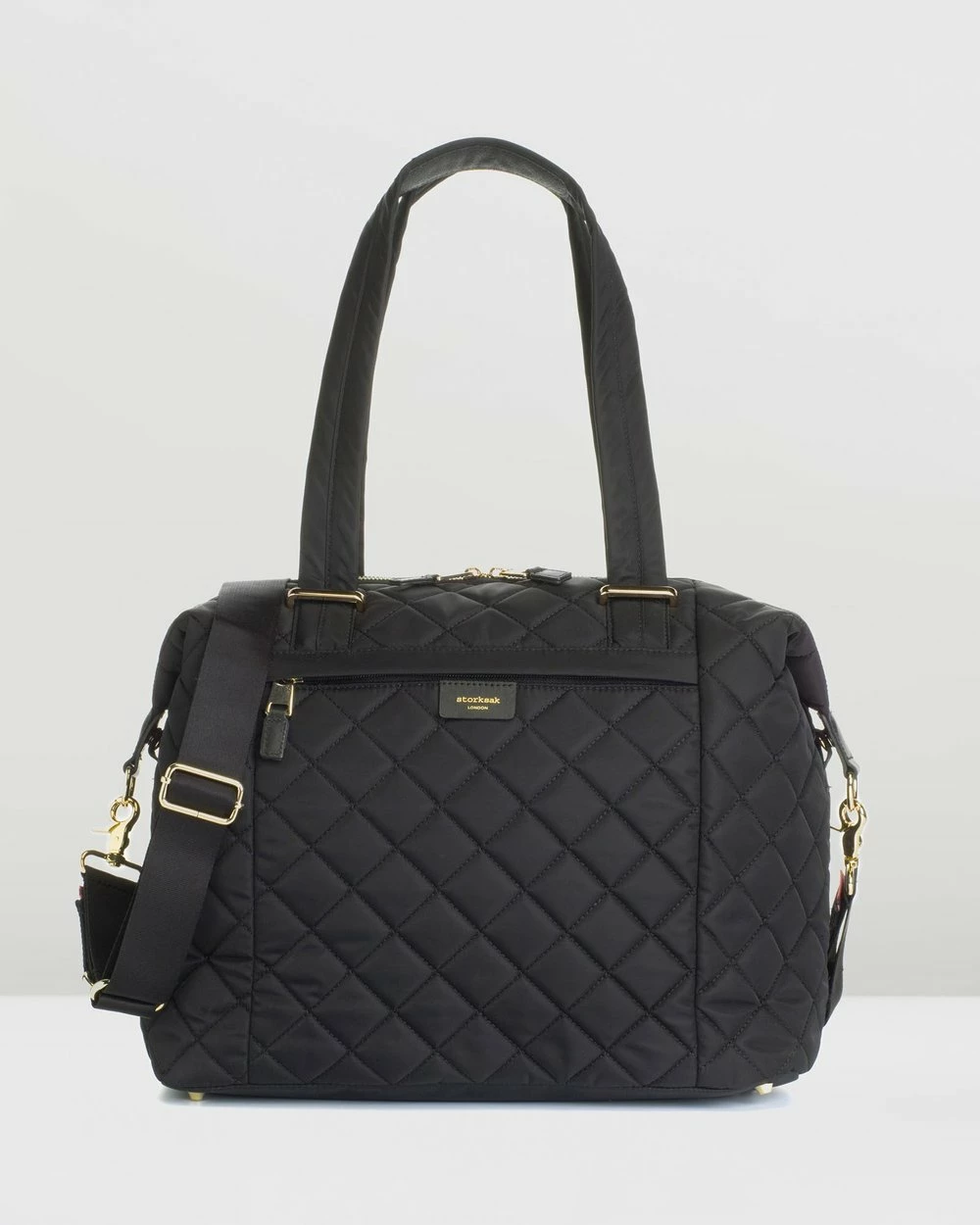 One of Storksak‘s newest designs, the Stevie Quilted Nappy Bag is defined by its timeless quilted nylon, accented with smooth leather trims and subtle hardware details. The Storksak Stevie Quilted is perfectly proportioned, with adjustable side tabs to alter the size and look instantly.