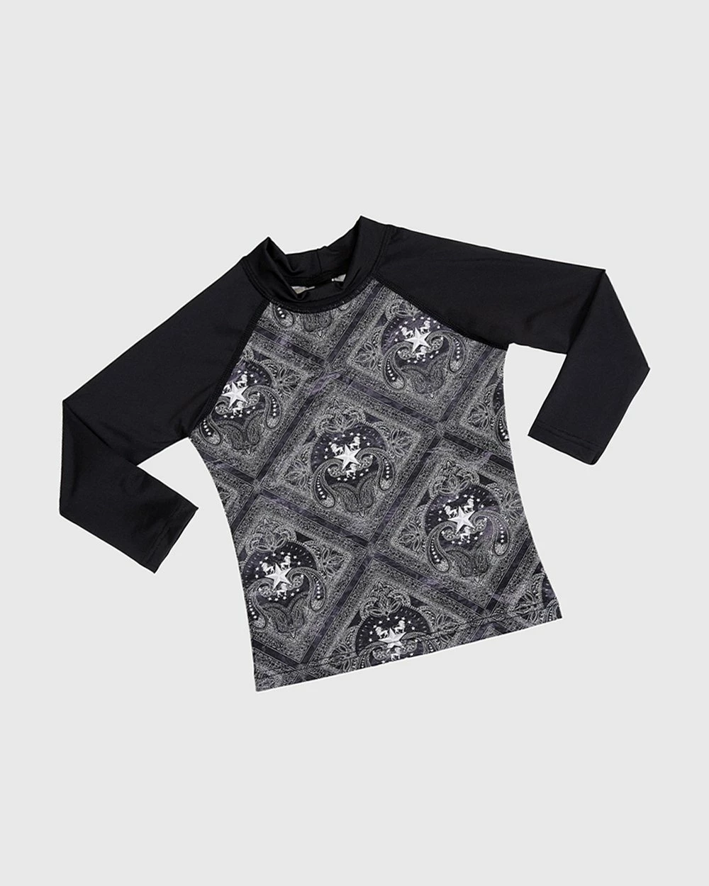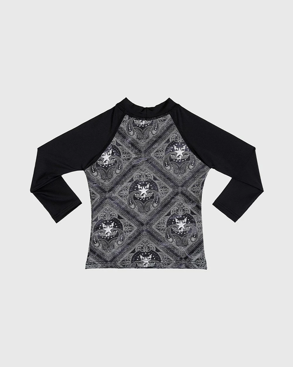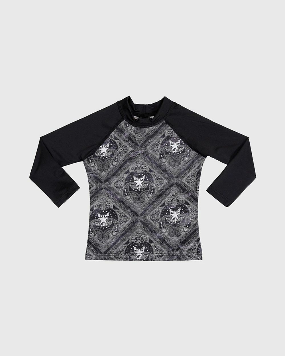 From Australian swimwear label, Aqua Blu Kids, comes the Imperial Long Sleeve Rash Vest. Bring some tropical fun to their budding swimwear collection.