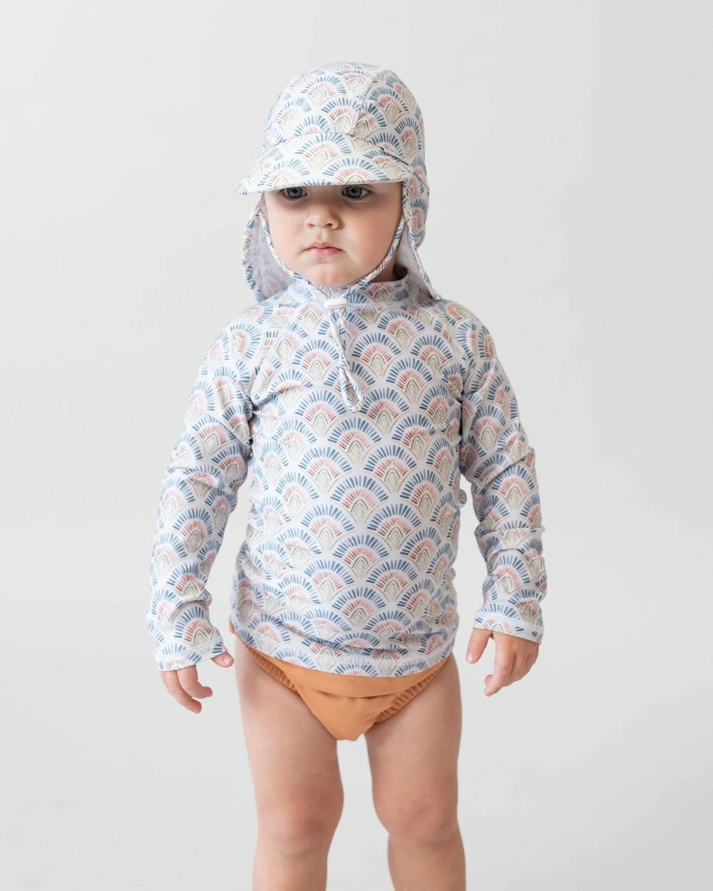 – Length: Rashie: 33cm; Flap Hat Circumference: 43cm (size small)