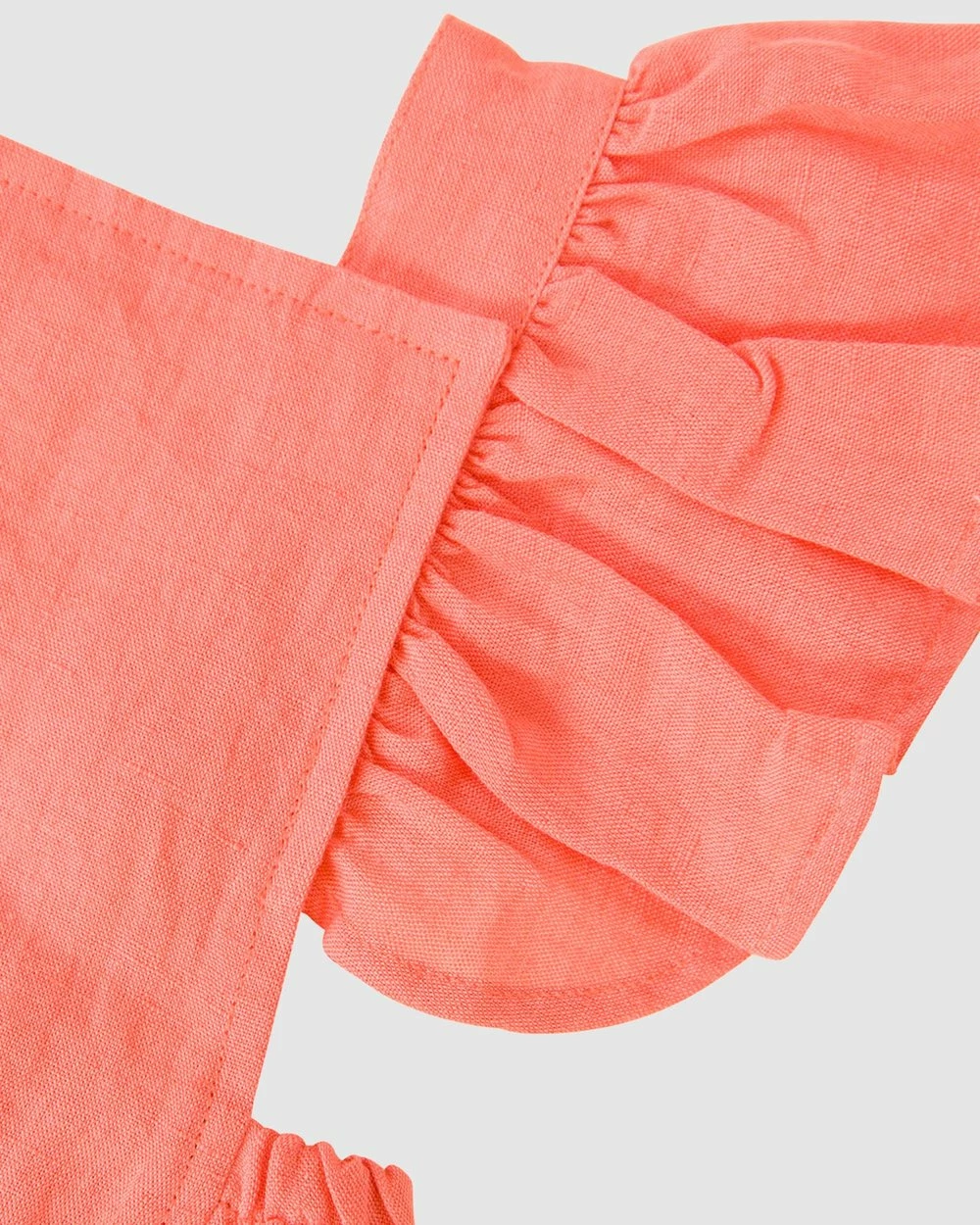 With delicate frills finished in pure cotton and snaps to fasten, Peggy‘s delightful Catherine Playsuit is ready for sunny days out.