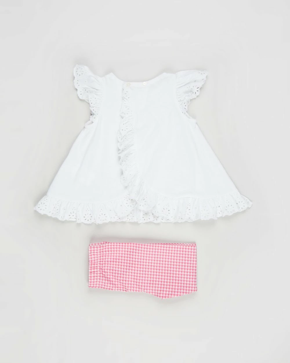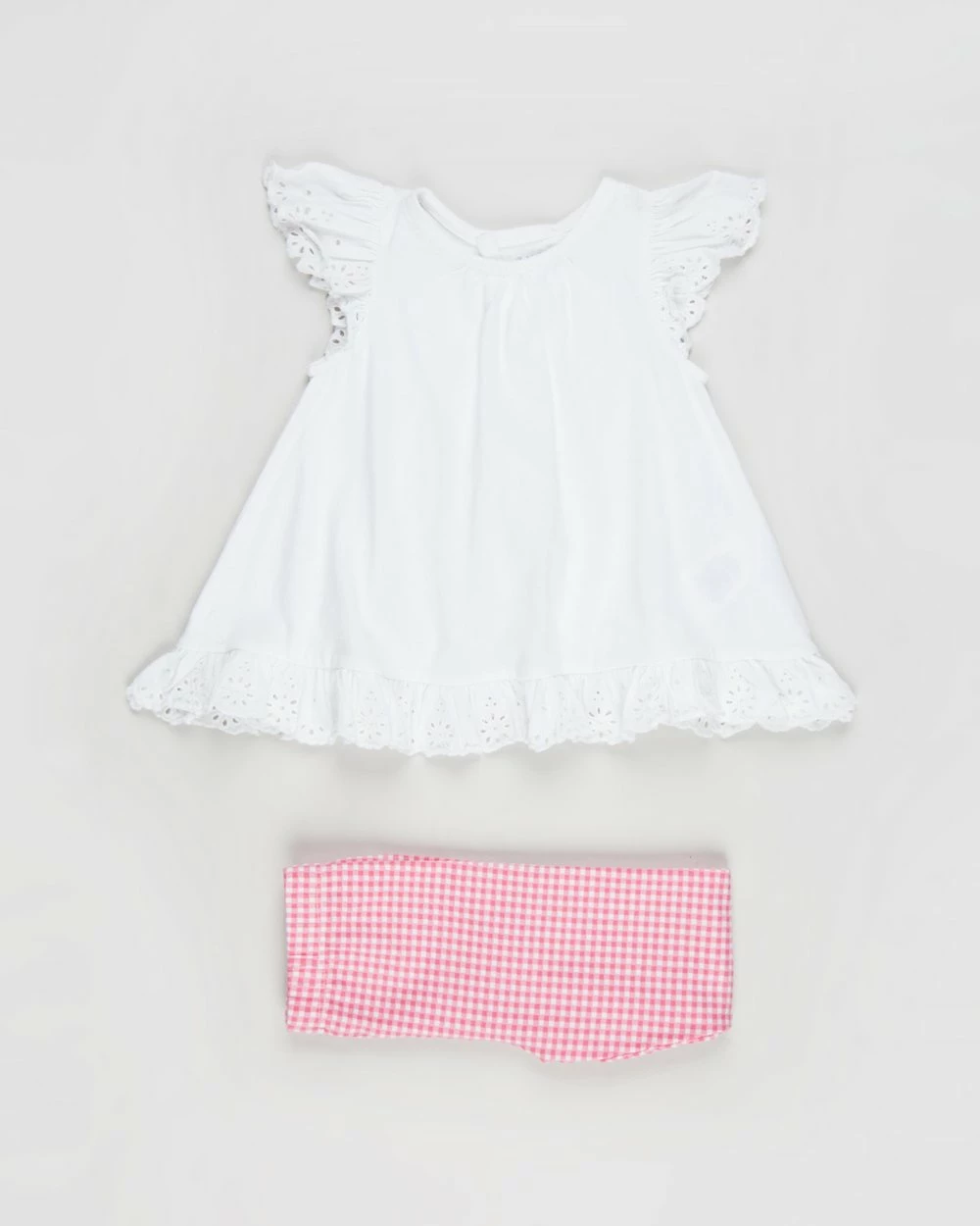 Simple but sweet, the Shirt & Gingham Leggings Set by Polo Ralph Lauren is made from 100% cotton and comes with pretty broderie anglaise detailing.