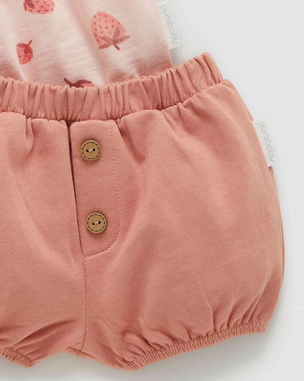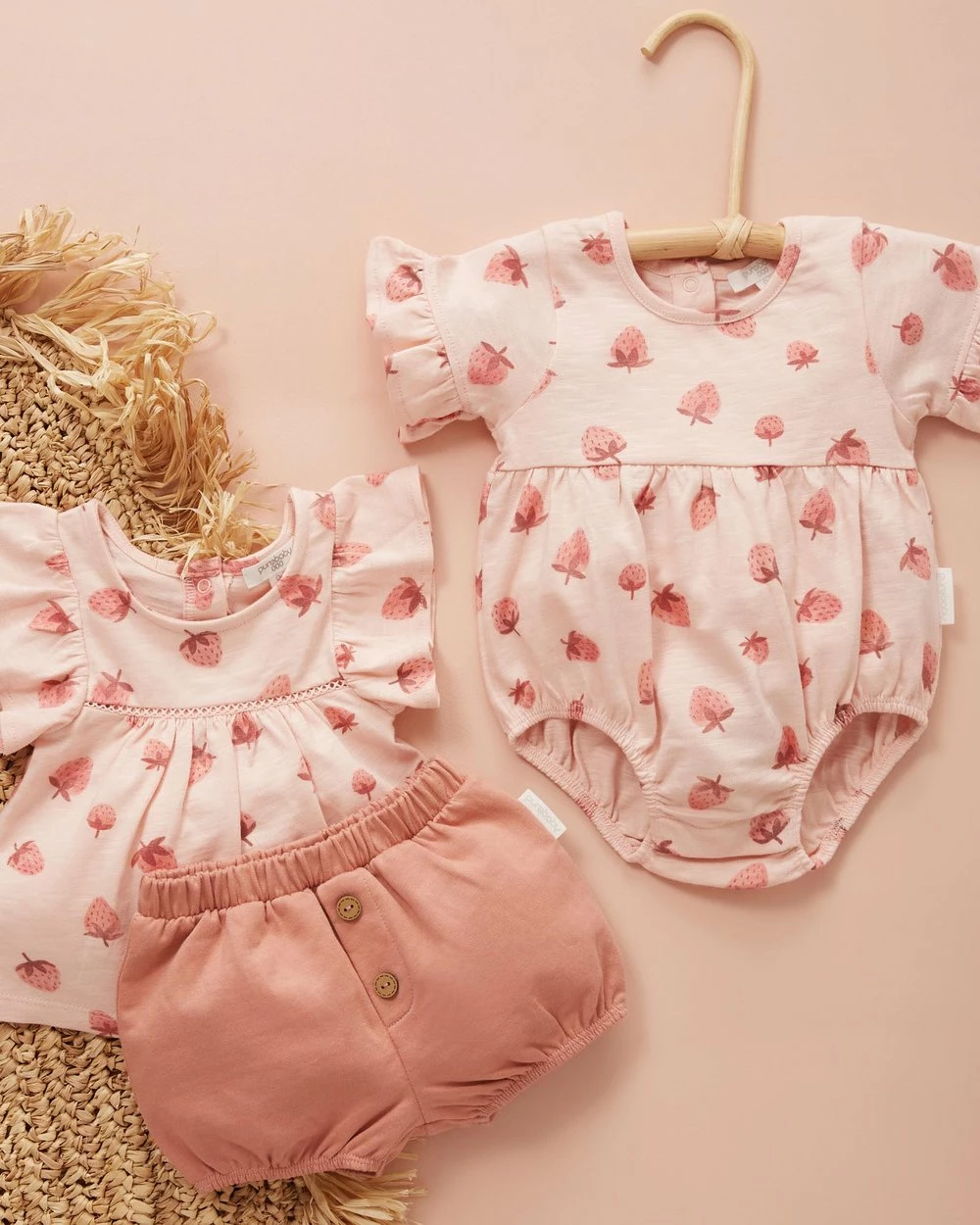 The sweetest little Strawberry 2-Piece Set from Purebaby! Perfect for fun in the sun and made from 100% organic cotton for a soft and breathable summer set.