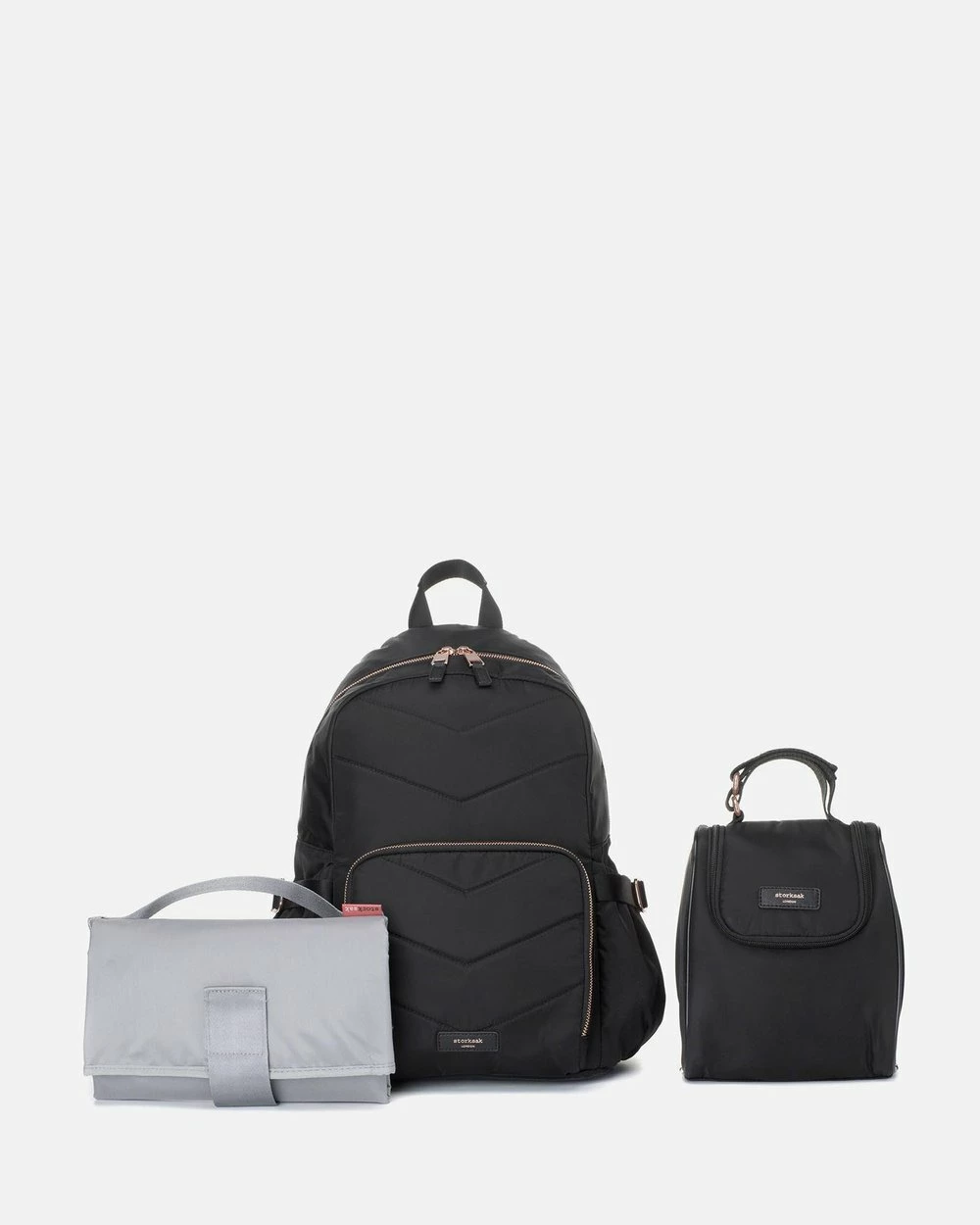 The spacious Hero Quilt Nappy Bag by Storksak, has a convertible shelf to transform the internal of the bag into two compartments for easy organisation and two zipper openings making it versatile and stylish!