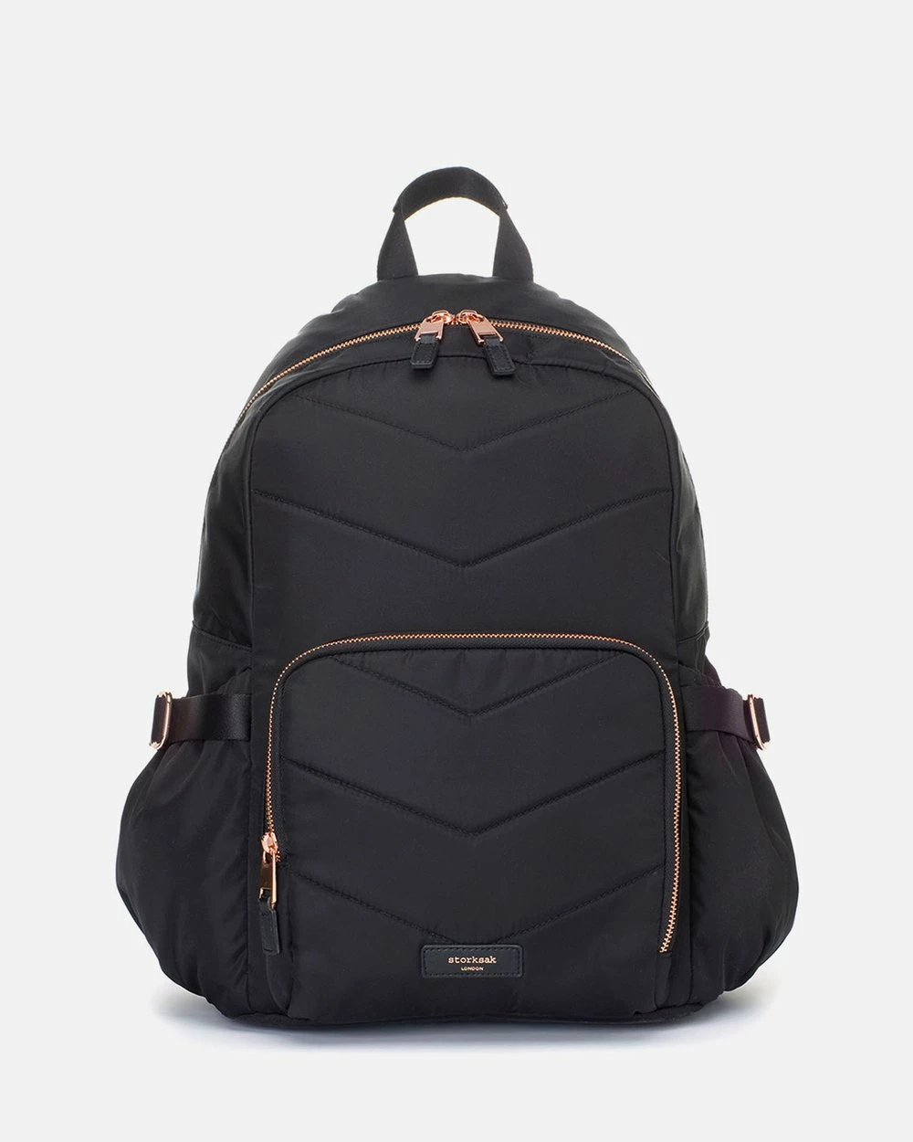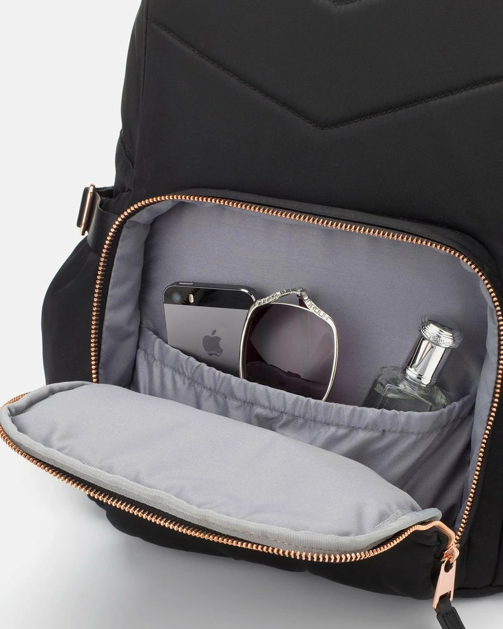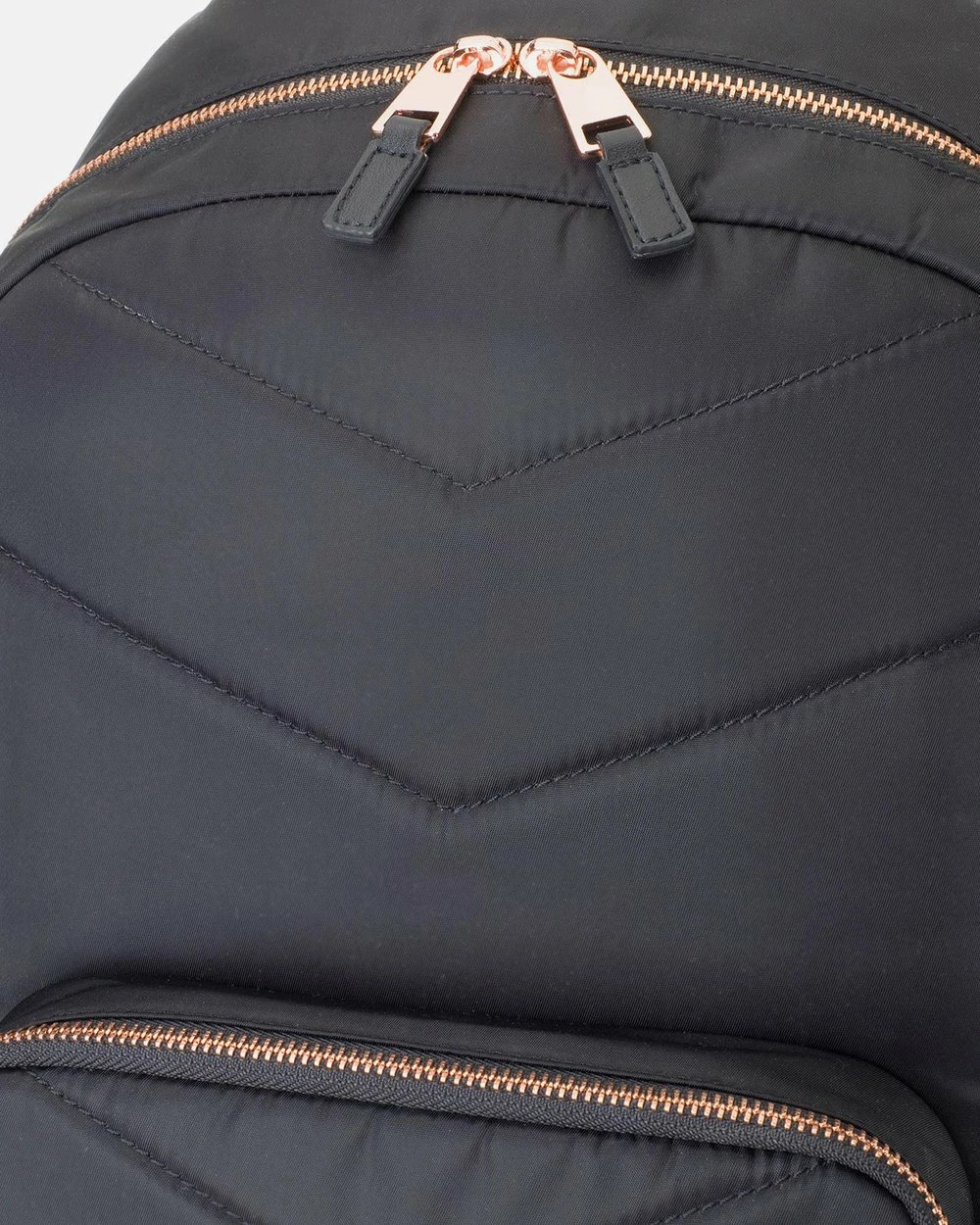 – Water resistant premium quilted nylon with rose gold hardware