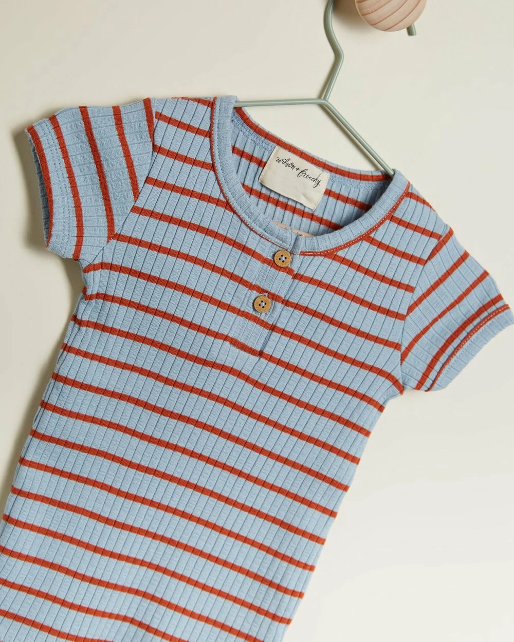 Get them cute and snug in the Organic Stripe Rib Top by Wilson & Frenchy.