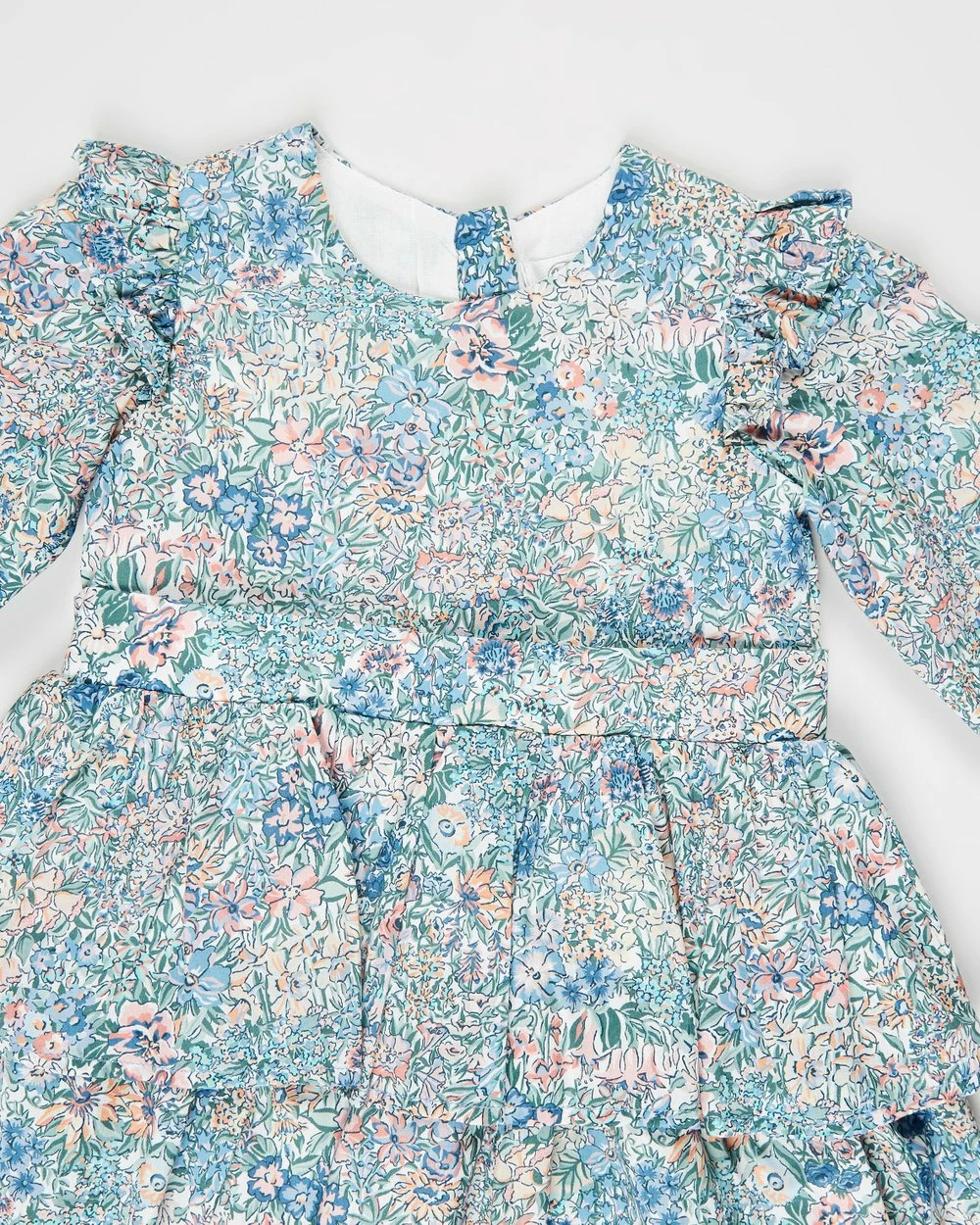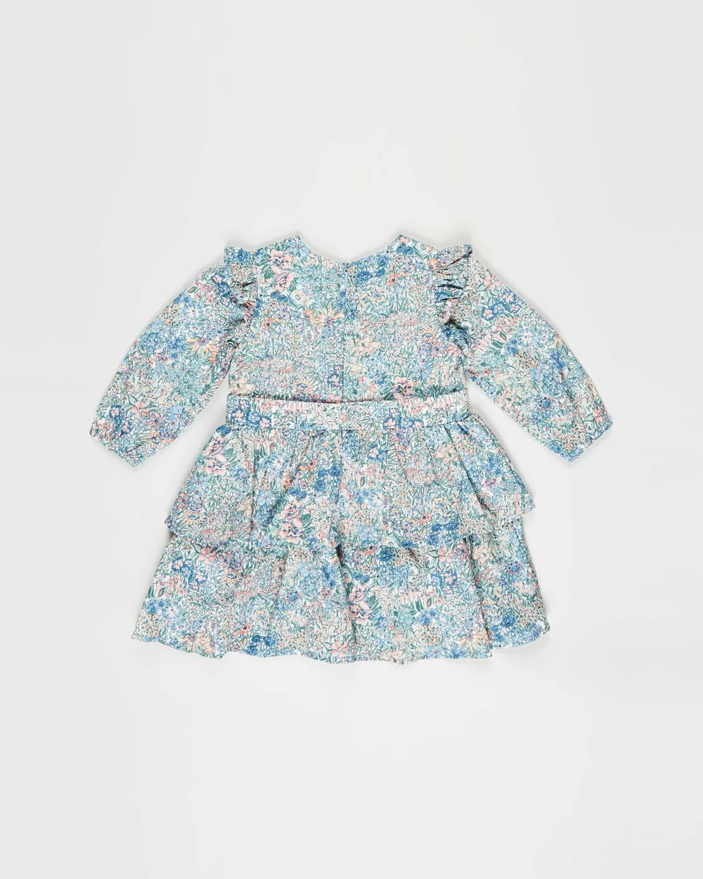 The Liberty Tiered Dress from Bebe by Minihaha demonstrates a classically feminine silhouette finished in ethereal florals for a sweet and delicate approach to special occasion attire.