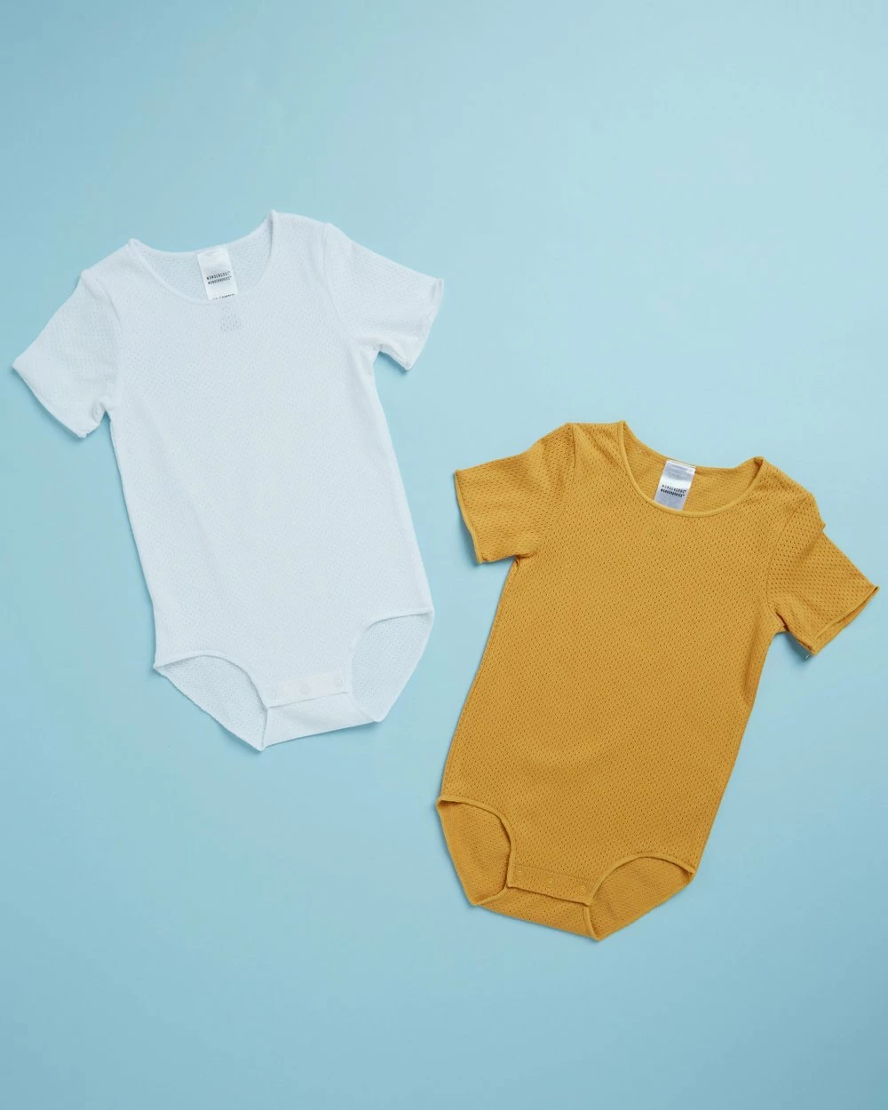 Budget ๐Ÿ˜‰ Bonds Baby Wondercool Eyelet SS Bodysuit 2-Pack – Babies Golden Glaze & White ๐Ÿ˜