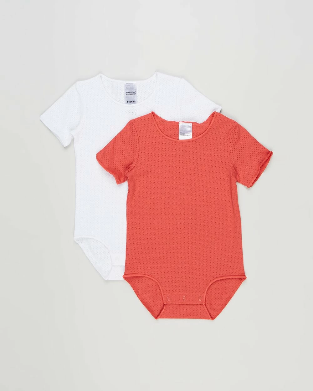 The Wondercool Eyelet SS Bodysuit 2-Pack by Bonds Baby offers a cooler, more comfortable night’s sleep, with the Wondercool fabric’s innovative cooling technology that imitates the skin’s natural bodily process of evaporative cooling.