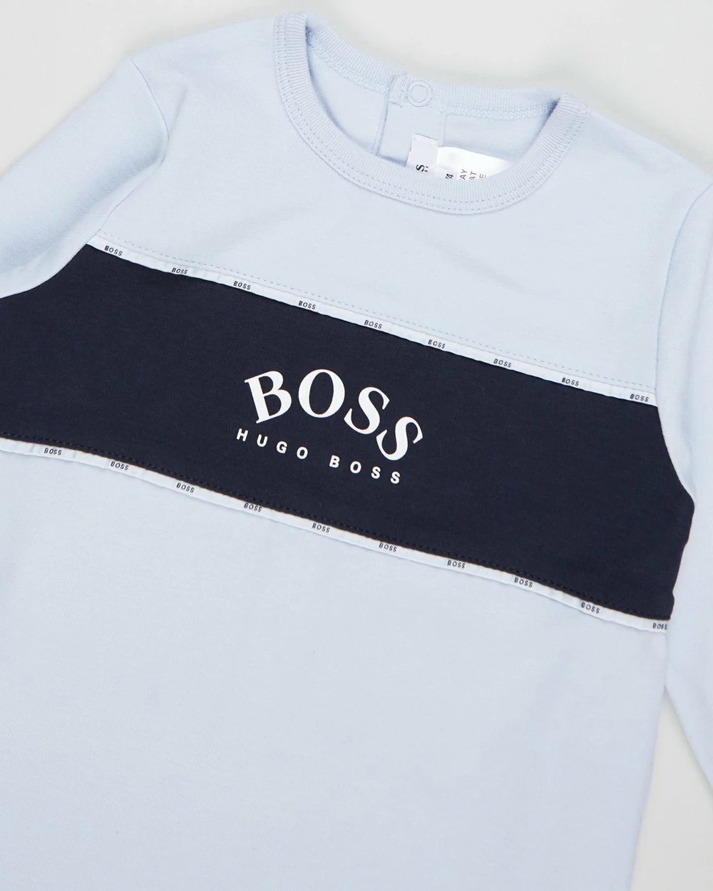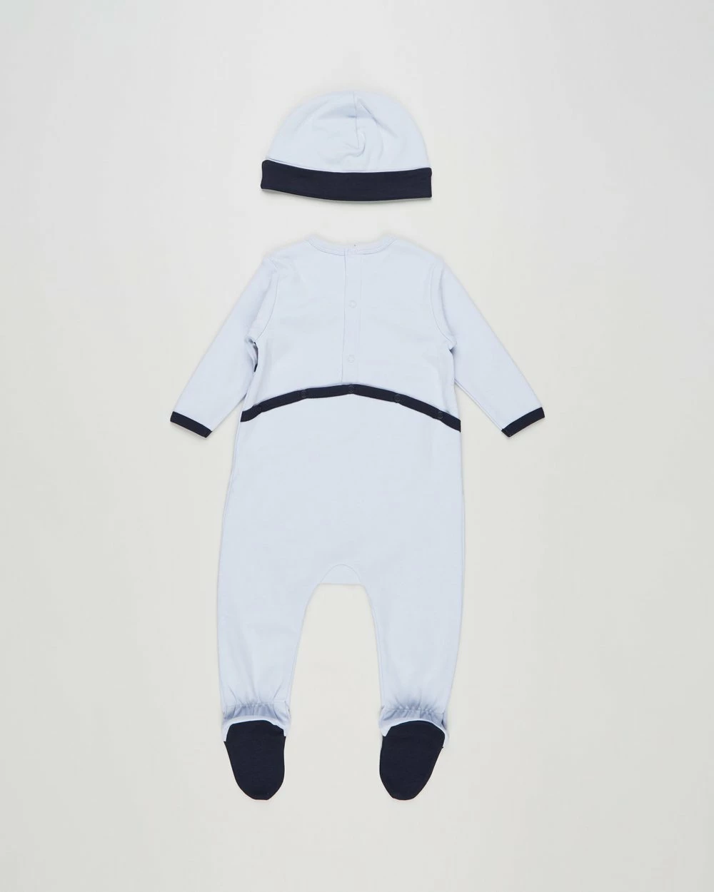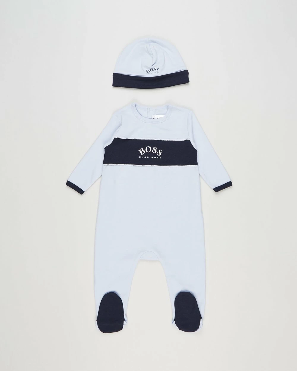Luxury fashion powerhouse BOSS creates a matching hat and all-in-one with the Pull On Hat & Pyjamas Set – Babies. Crafted from pure soft cotton to match the delicate skin of your little one.