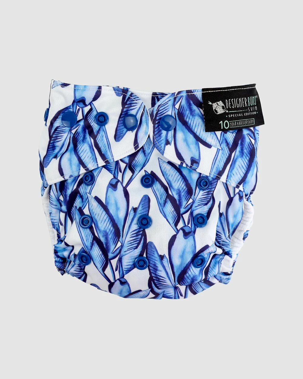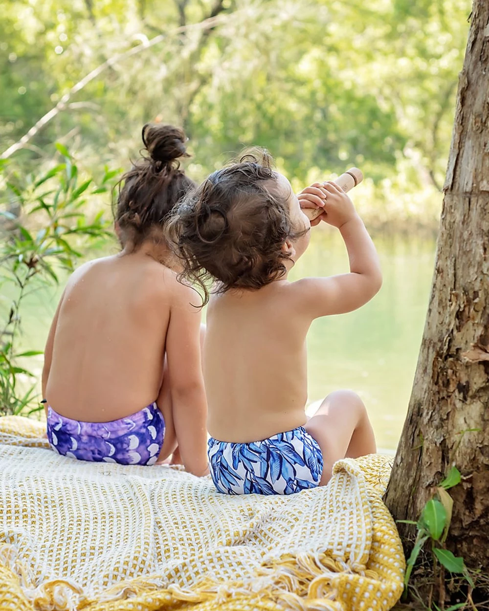 The Designer Bums Reusable Swim Nappy is a must have item for water play and baby swimming. They are stylish, easy to use, reliable, and a gentle and comfortable choice for you and your little one. – 3 adjustable rise settings for the perfect fit- One Size Fits Most – suitable from approx. 3.5kg- 15+kg, depending on body shape- Features a double elastic gusset, to ensure a comfortable and secure seal to capture any “number 2” accidents and give you time to get out of the water.- Lined with a quick-drying athletic wicking jersey inner which allows water to easily pass through – A sustainable option which reduces waste and reliance on single use products- Exclusive custom-designed hand illustrated prints.