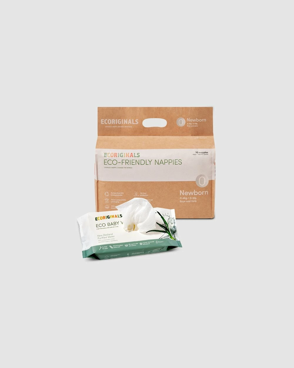 1 pack of 90%+ biodegradable nappies + 1 pack of luxurious 100% plant based wipes(30 nappies and 70 wipes)