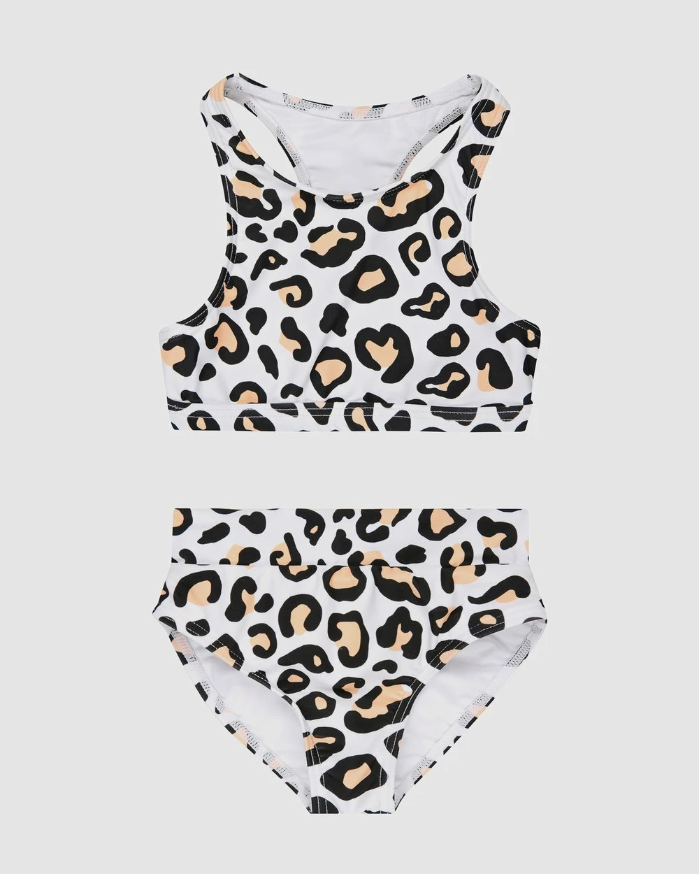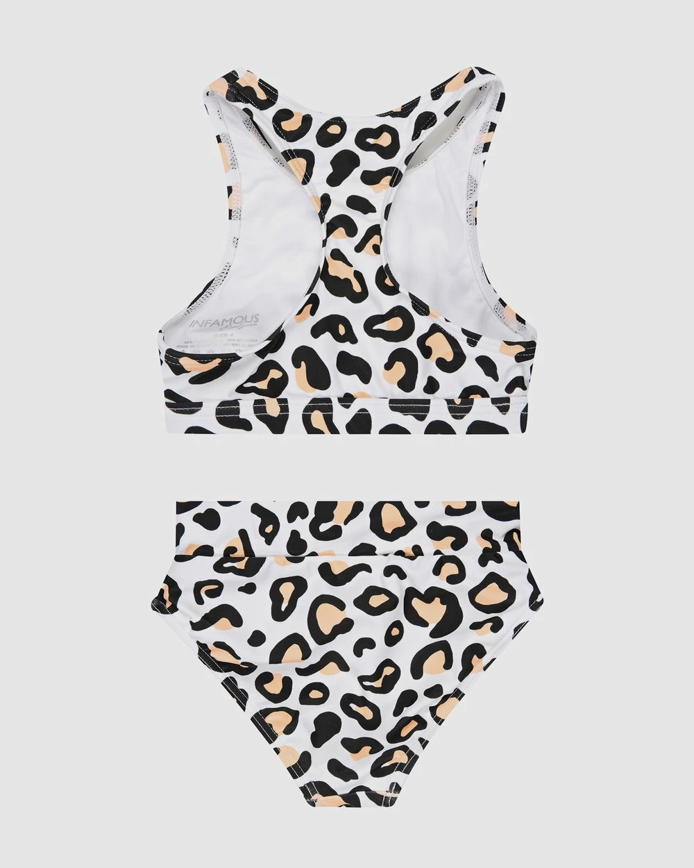 Designed in Australia, Iโnfamous Swim Mini Gia Bikini Setโ in Safari Leopard print features a classic racer back, scoop neck, crop bikini top paired with high waisted bikini bottoms.Tโhis matching set for your wild child is an ideal match to the womenโs Infamous Swim Gia Bikini Top and Ginger Bikini Bottoms. All crafted from luxurious Polyamide/Spandex with UPF50+ sun protection.