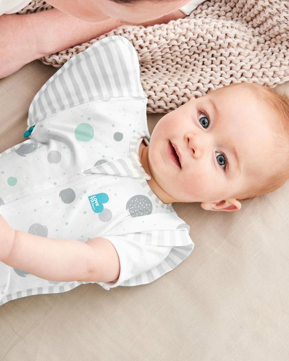 Love To Dream’s SWADDLE UP™ Transition Bag Lite 0.2 Tog can be used to transition from any type of swaddle. The easiest & gentlest way to help your baby graduate from swaddling while maintaining the snug secure feeling of being swaddled.