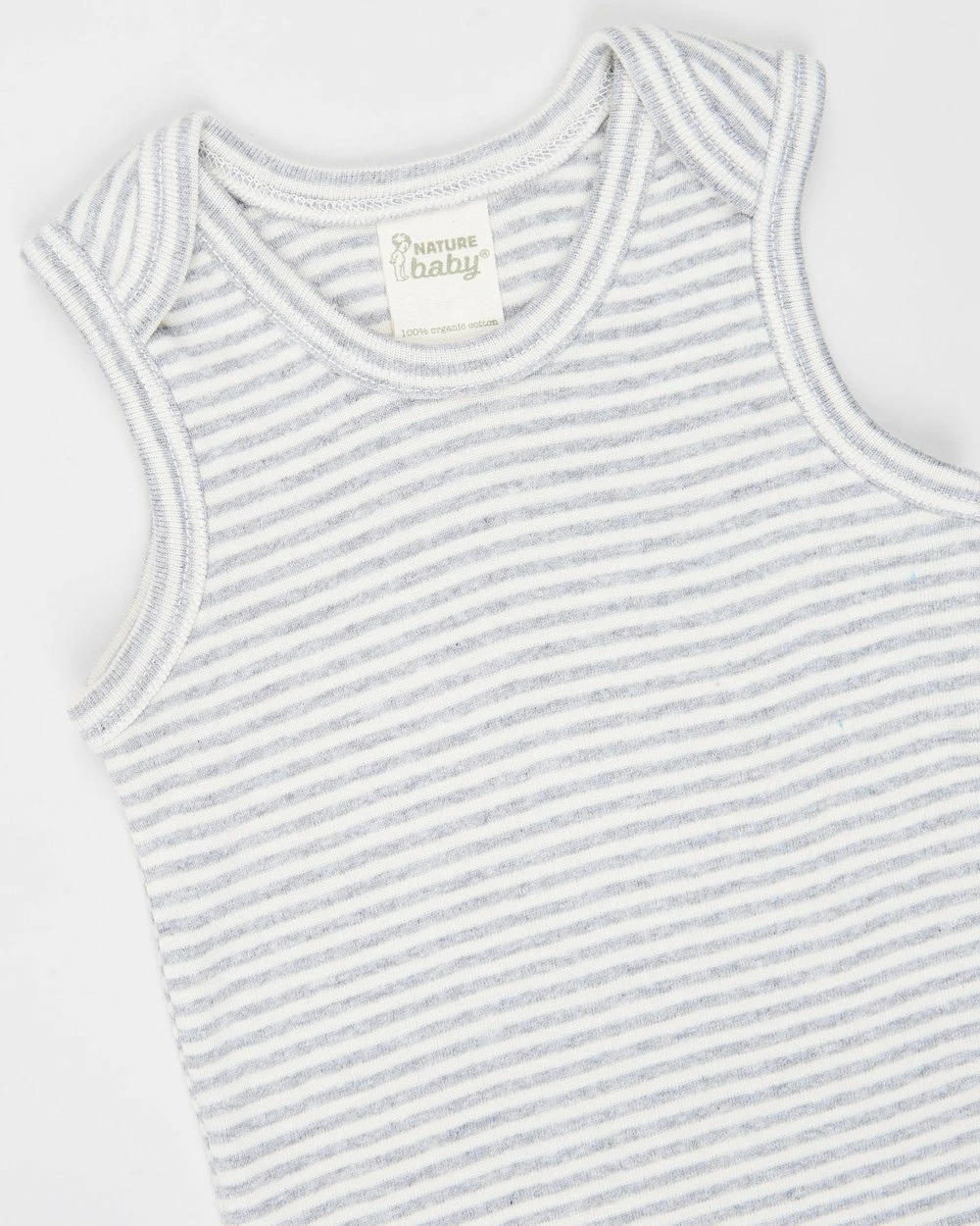 The Singlet Bodysuit from Nature Baby NZ is crafted from ultra-soft, organic cotton ribbed jersey in an easy-to-dress sleeveless design.