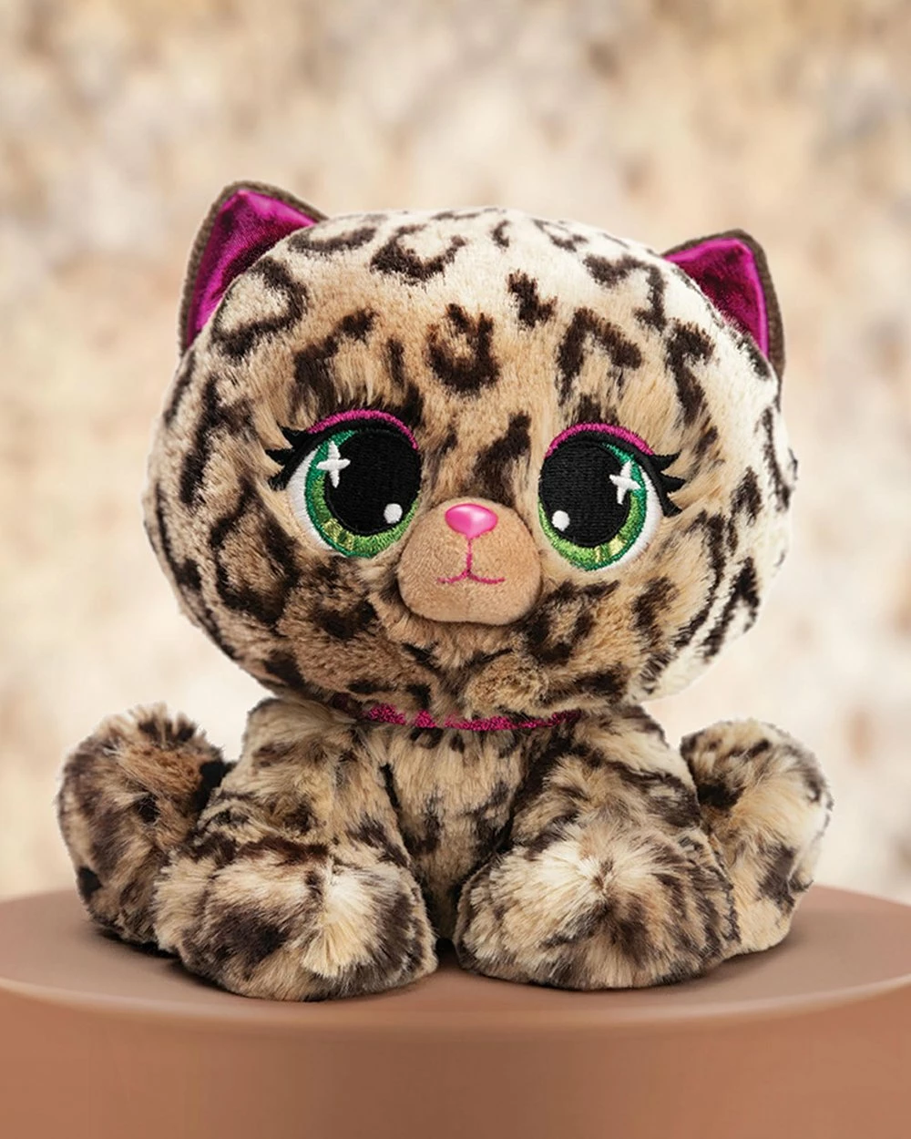 Start your P*Lushes Pets collection with the fashionable Sadie Spotson and her soft spotted fur, bright pink ears, dainty pearlescent nose, emerald green-toned eyes and glittering pink collar.