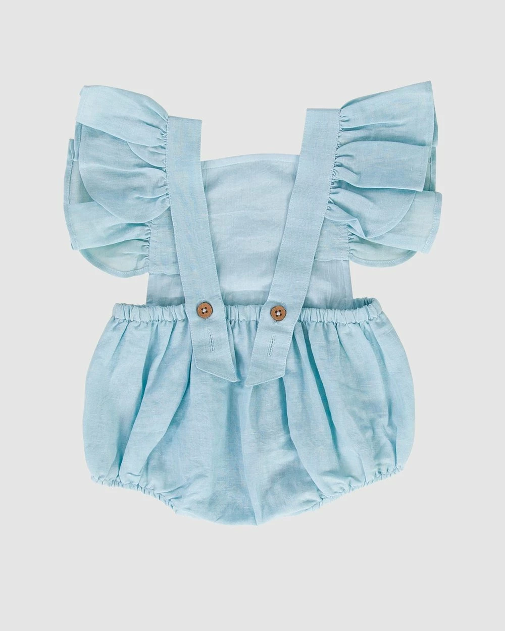 With delicate frills finished in pure cotton and snaps to fasten, Peggy‘s delightful Catherine Playsuit is ready for sunny days out.