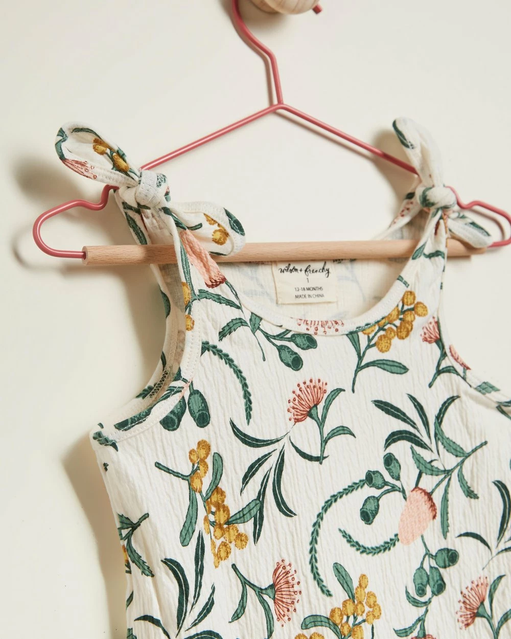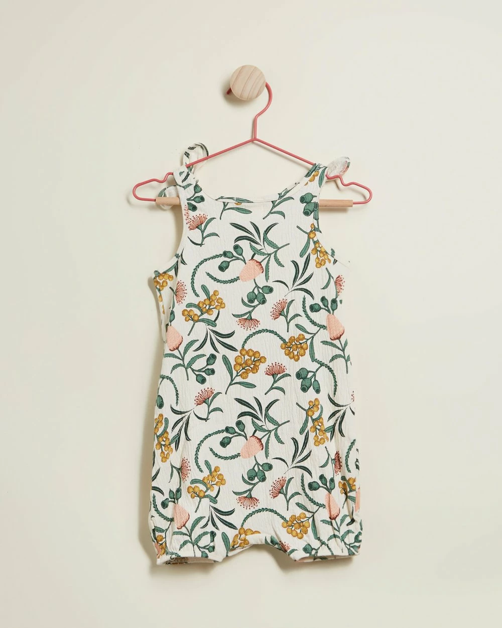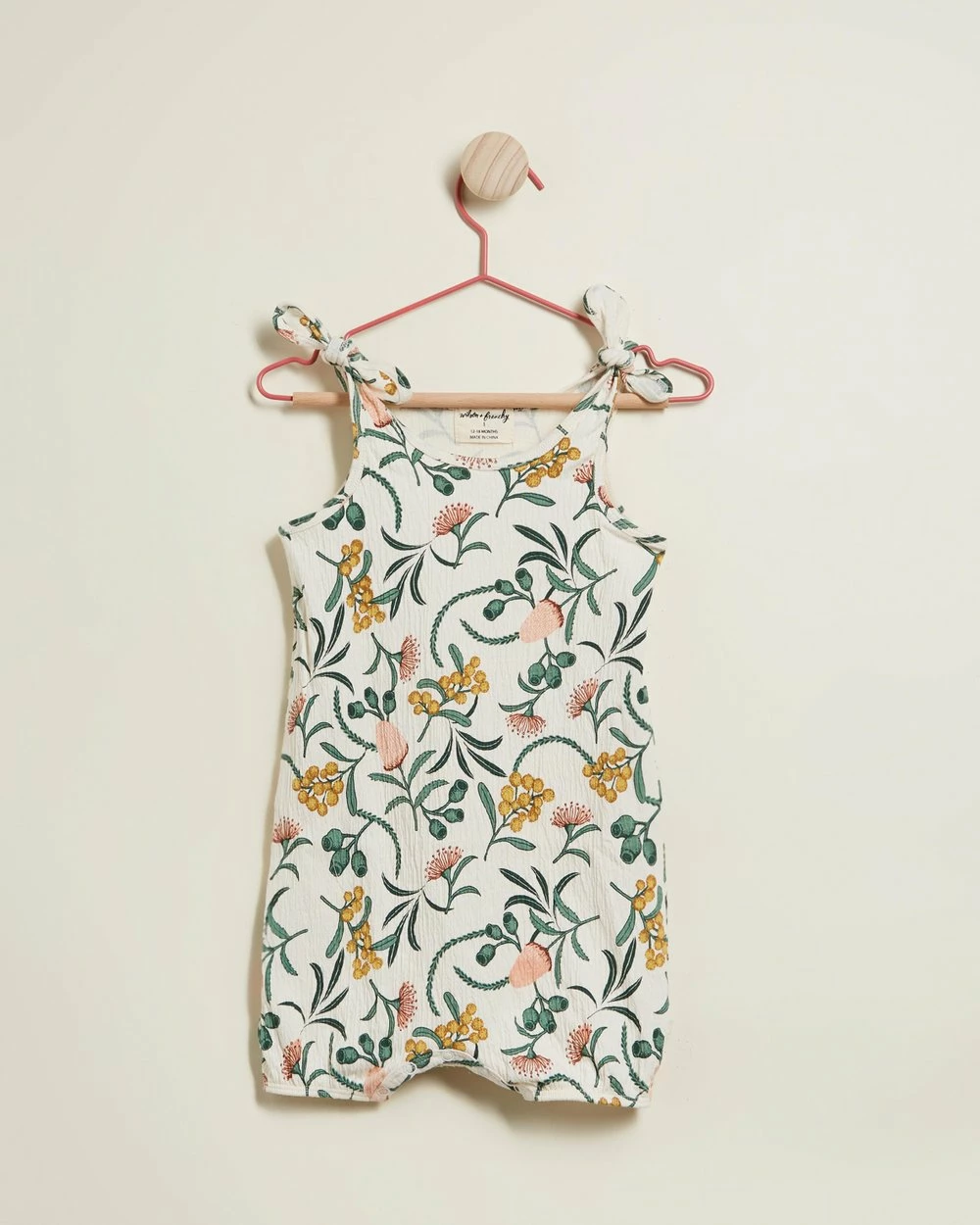 Summer play dates and outings are made easy with the cotton-rich Crinkle Tie Playsuit by Wilson & Frenchy.