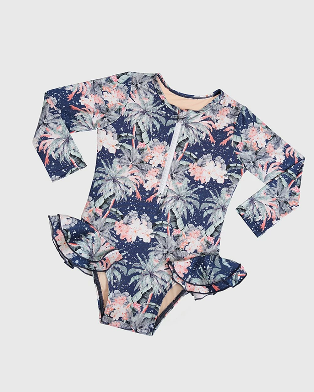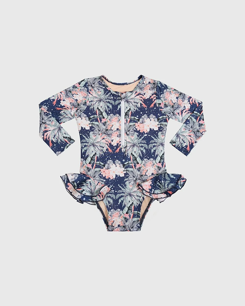 From Australian swimwear label, Aqua Blu Kids, comes the Indianic Long Sleeve One Piece. With its delicate print and soft fabric, it is a gorgeous addition to her growing swimwear collection.