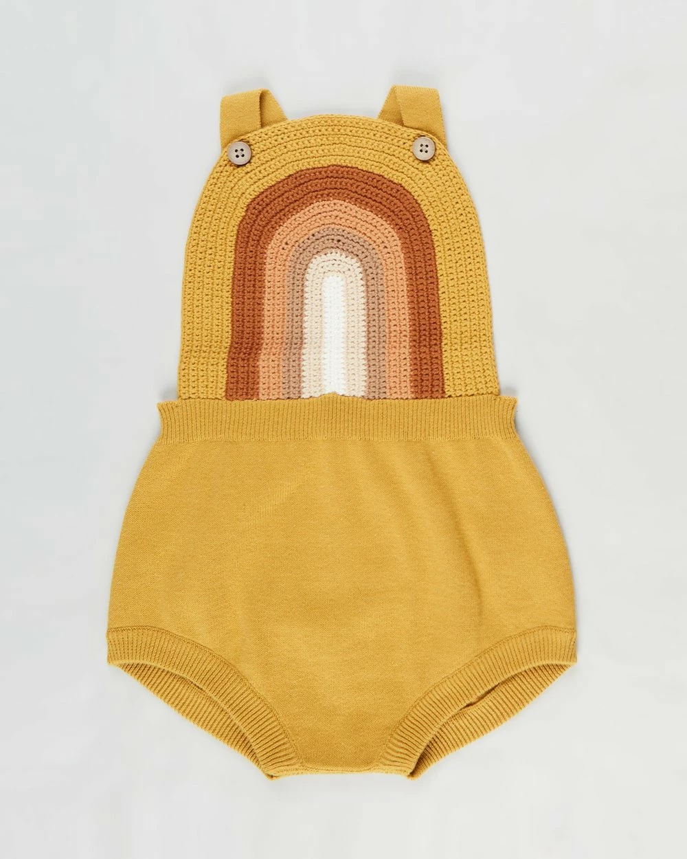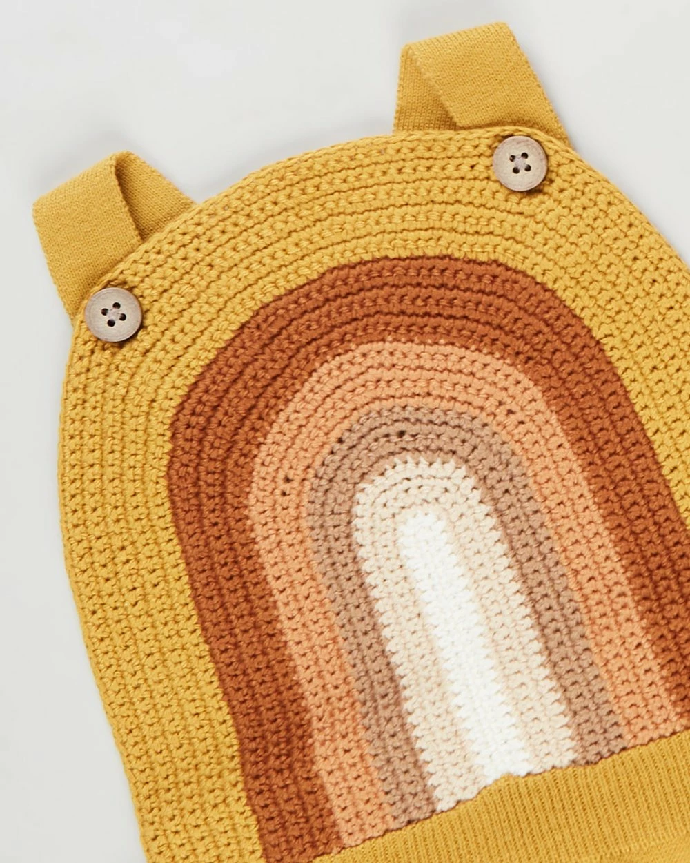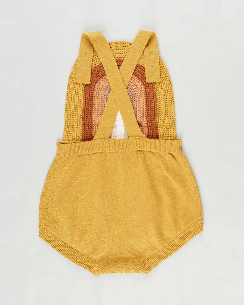 – Rainbow crotchet knit to front bib