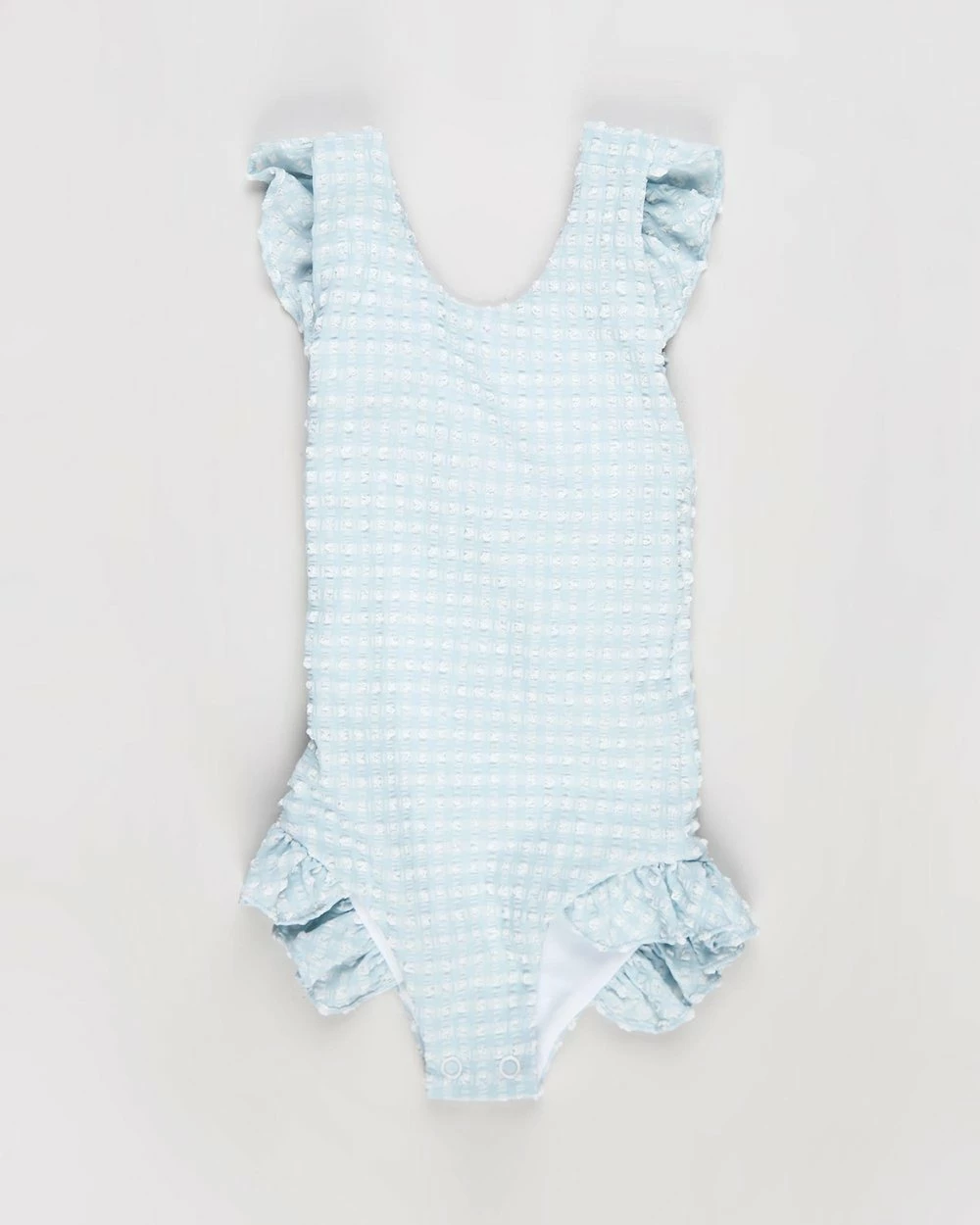 With sweet ruffles and a textured gingham pattern, the Tabitha Girls One Piece from Fiola Rose Swim is an essential for summer.