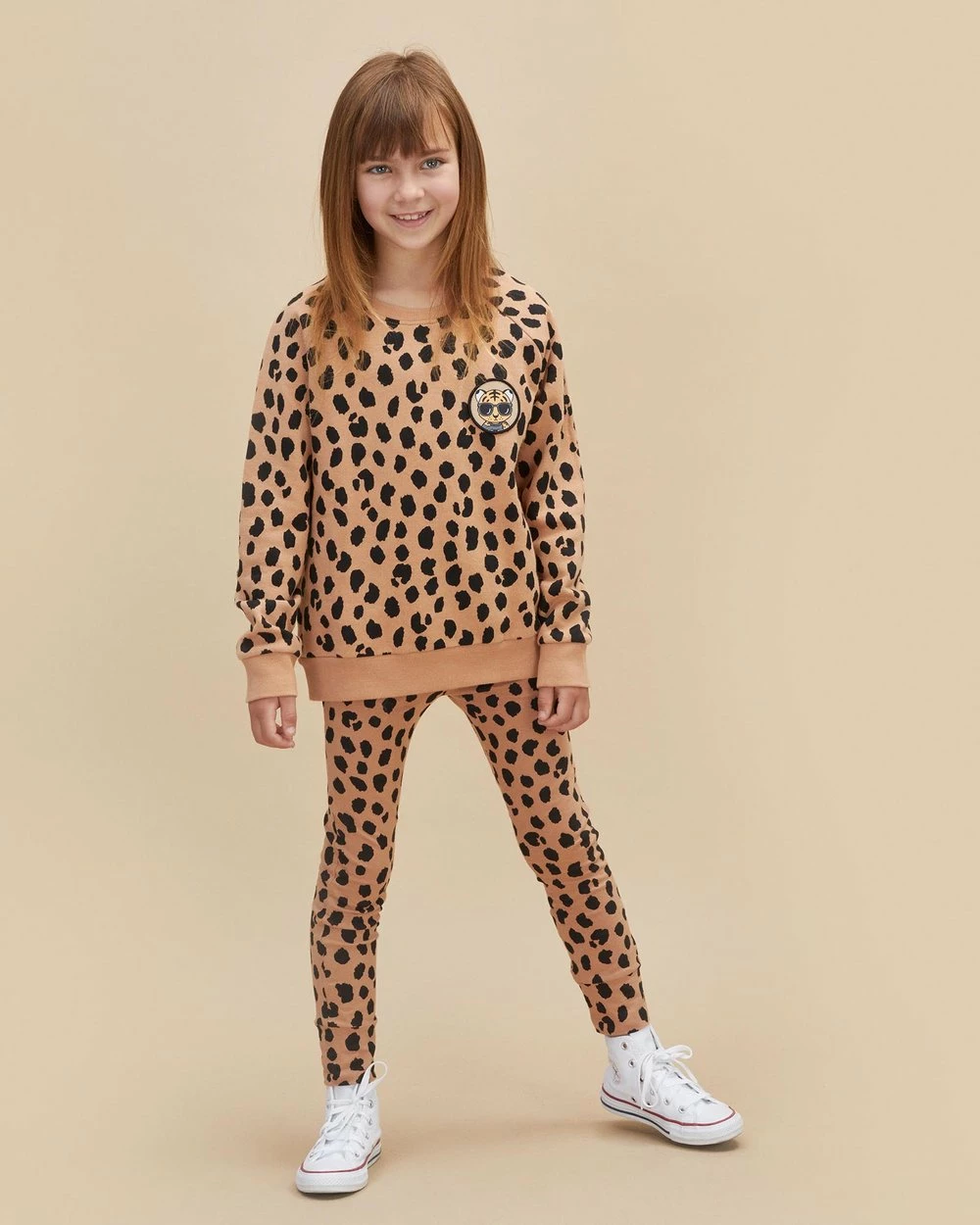 – All-over animal print with tiger patch