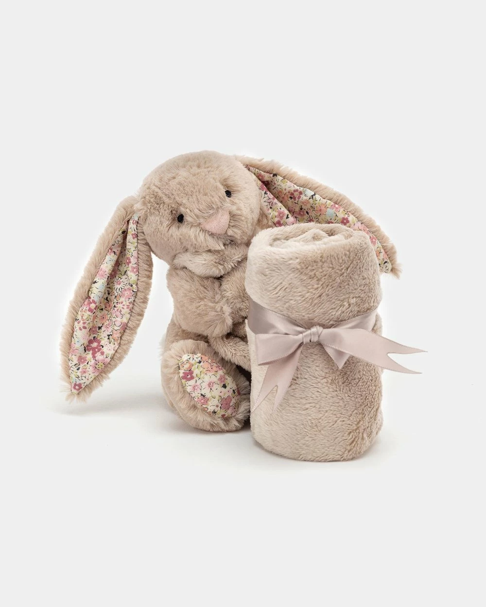 For springy snuggles, reach out a paw for Jellycat’s Blossom Bunny Soother! Cloudy-soft in cosy beige, this soother is sweetly wrapped up in a ribbon, and holding on tight is a snuggly bunny with ears full of tumbling flowers!