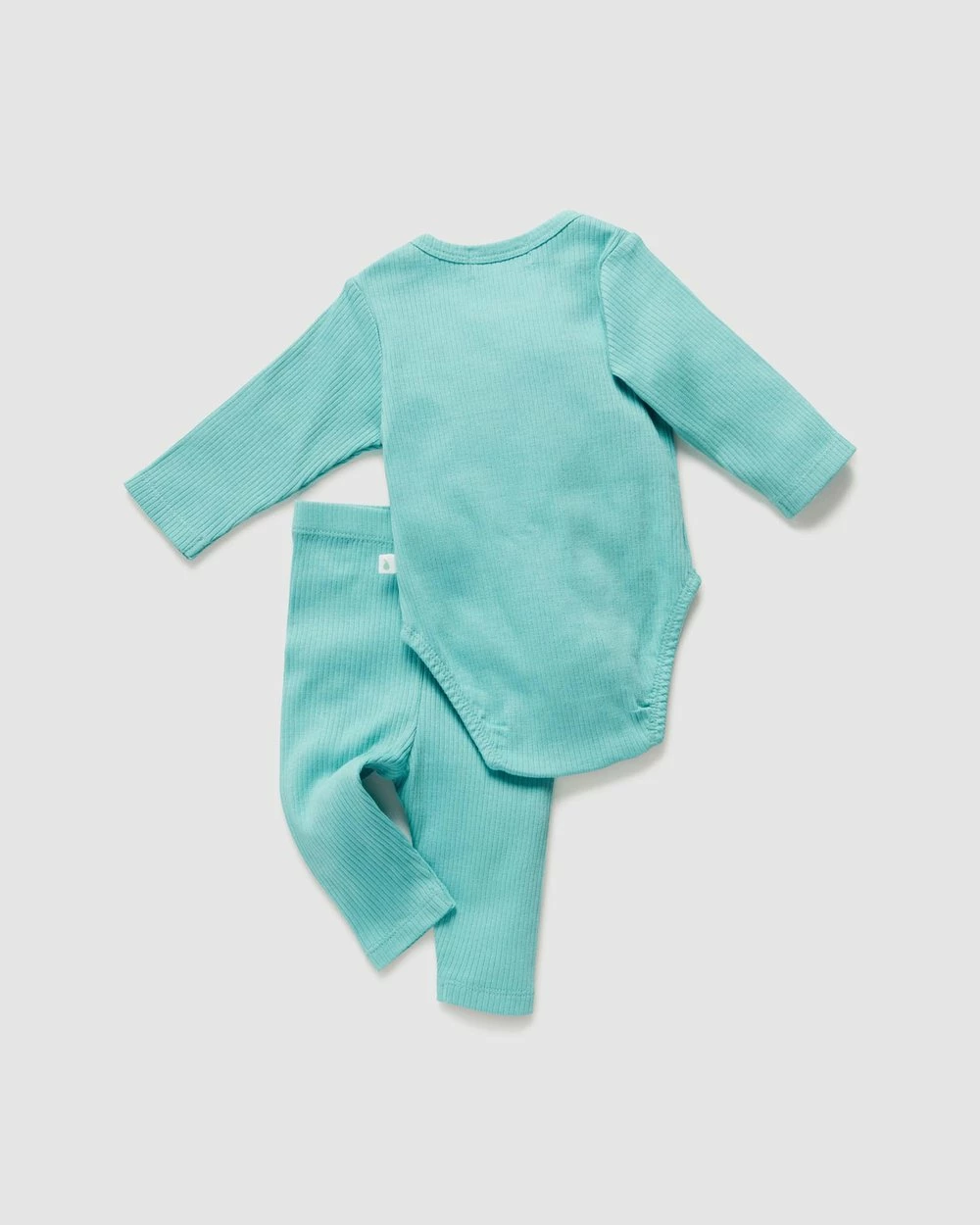 The Rib Long Sleeve Bodysuit & Leggings Set by Little Green & Co can be worn separately are layered together.
