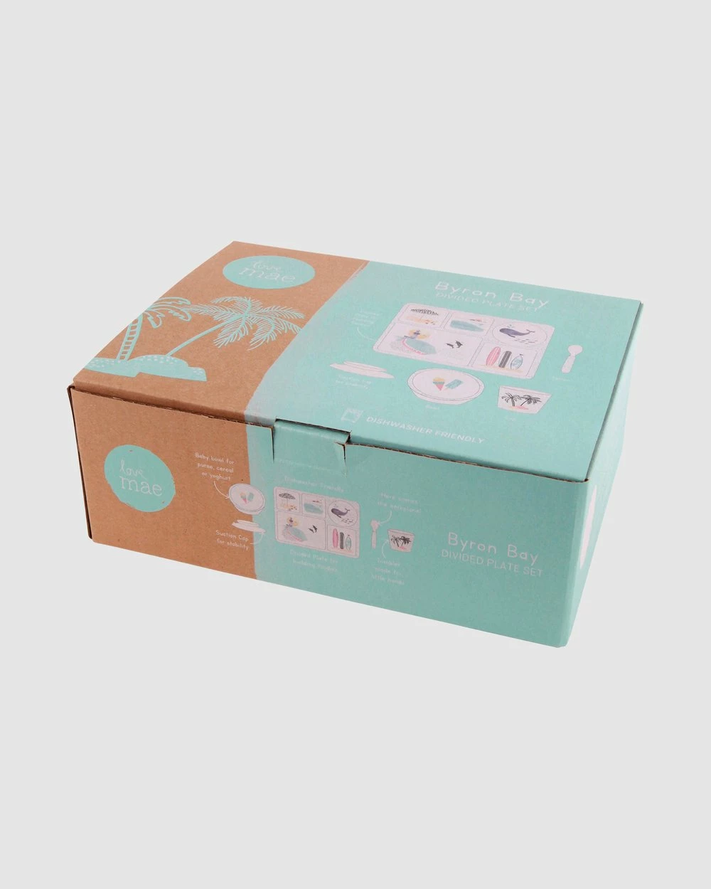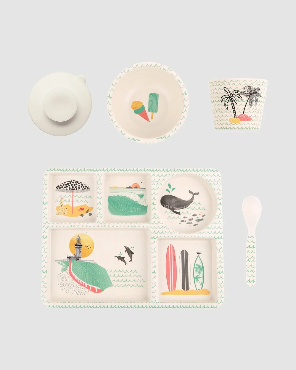 The dishwasher safe Love Mae Divided Plate Bamboo Dinner Set has every meal looking good. Containing a 5 sectioned divided plate, small bowl, mini tumbler, spoon and suction cap it's the perfect start for your little foodie.