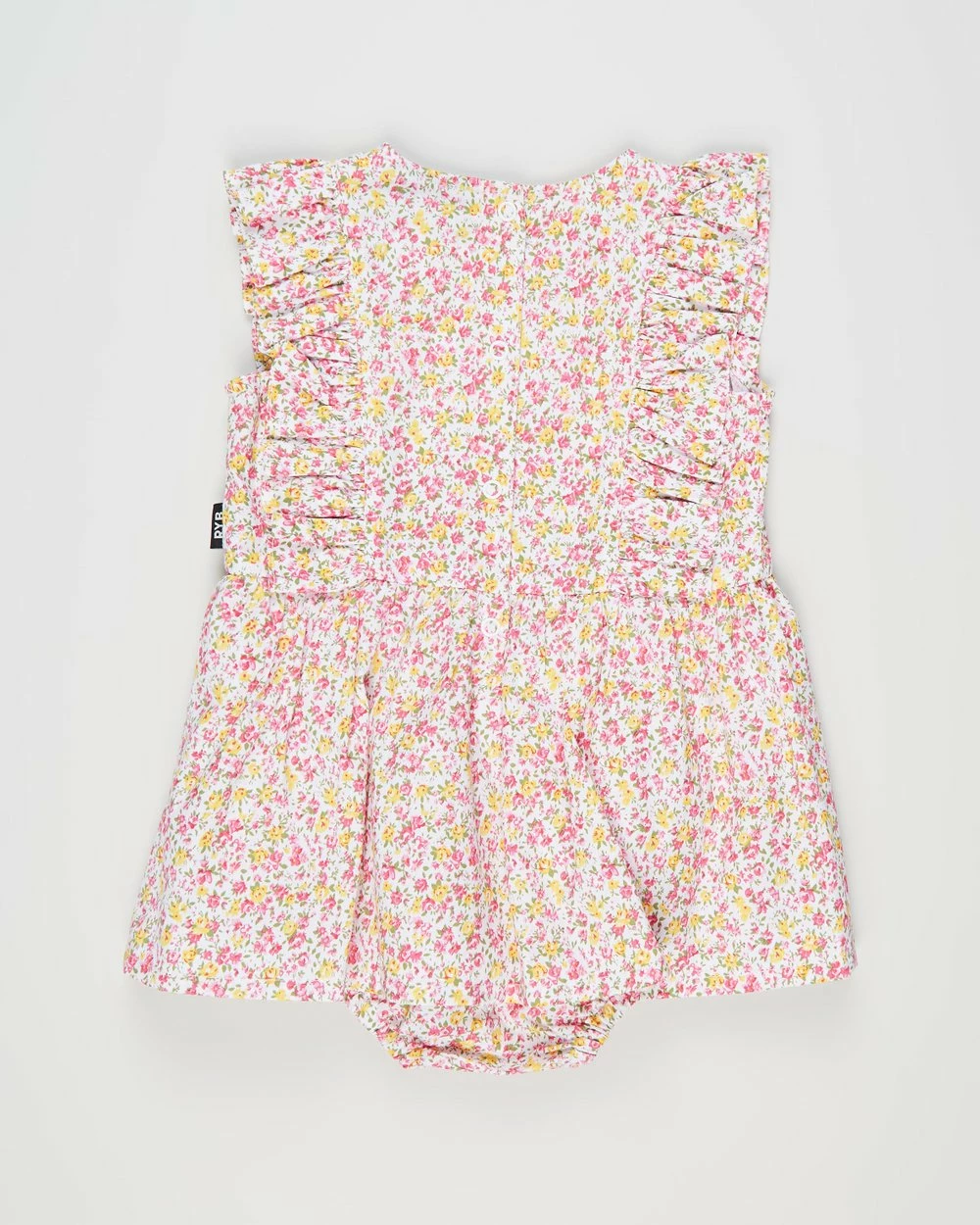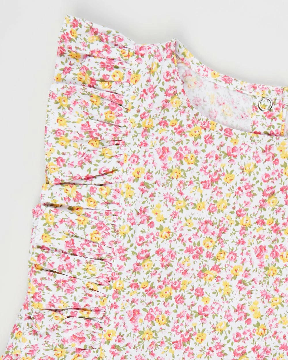 – Ruffle cap sleeves and princess seam trim
