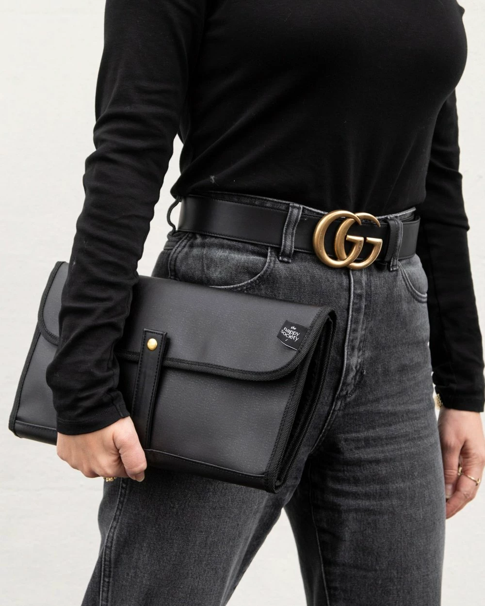 The Nappy Society Luxe Baby Change Mat is as chic as a clutch with the function of a change mat. Padded for baby’s comfort, pockets for convenience and folds securely and stylishly to appear like a clutch bag.